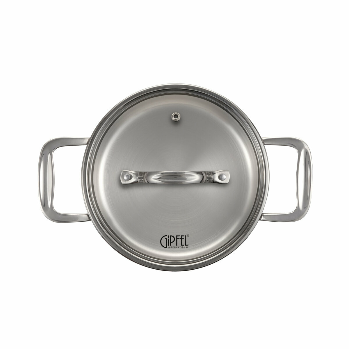 Серия GALA представляет собой серию классических кастрюль и ковшей из высококачественной нержавеющей стали марки 18/10, выполненных в классической металлической расцветке. Посуда данной серии оснащена индукционным дном, эргономичными ручками, которые не нагреваются при готовке, а также стеклянной крышкой с отверстием для выпуска пара. Объем данной кастрюли составляет 2,3 литра. Толщина дна кастрюли 4 мм.