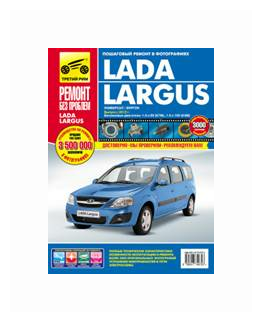 Многокрасочное справочно-информационное издание руководство по ремонту Лада Ларгус, а также руководство по эксплуатации и техническому обслуживанию Лада Ларгус, устройство Лада Ларгус в кузовах универсал и фургон с 2012 года выпуска, оборудованных бензиновыми двигателями рабочим объемом 1,6 л. - К7М 8V, К4М 16V.