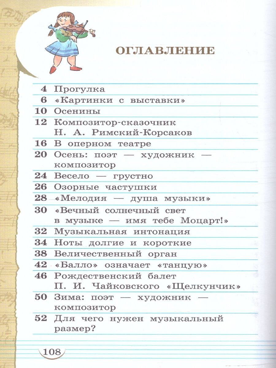 Главная тема года - "Музыкальная прогулка" - развивает и углубляет содержание важнейших тематических блоков: "Музыкально-театральные жанры", "Музыка - живопись - поэзия", "Музыкальные инструменты", "Основы музыкальной грамоты".