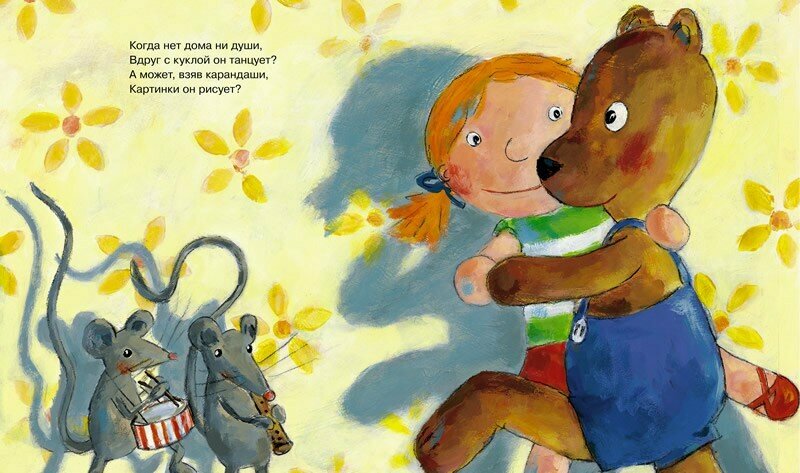 Вот и этот медведик – и в тексте Хэхлера, и в иллюстрациях Мюллер – не только и не столько плюшевый, сколько вполне живой и обаятельный. Книжки рассчитаны на совсем маленьких читателей 2-3 лет, поэзия для этого возраста должна быть лаконичной, точной и простой. Поэтесса Наталья Хрущева, автор блестящих игровых стихов, пошла при переводе этих книжек иным путем: это очень незатейливые, легкие и теплые строфы, главная задача здесь – не играть в стихи, а соприкоснуться с миром поэзии, понять, что стихи, рисунки и игрушки – очень важна часть ближнего мира, и как же бывает замечательно, когда они гармонично дополняют друг друга!