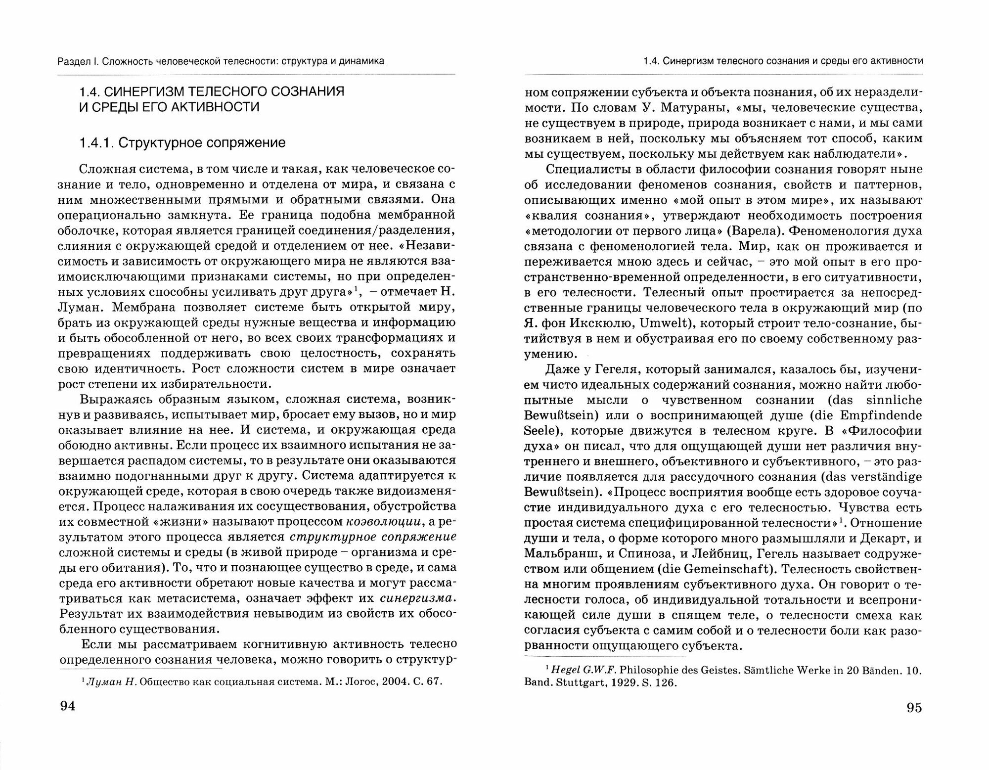 Авторами монографии разрабатывается принципиально новый подход к осмыслению природы человеческой телесности с учетом ее свойств как сложного системного феномена и как одной из составляющих самоорганизующейся целостности "человек - мир". Принципиальным в рамках подхода является рассмотрение феномена телесности как динамично развивающегося и сложно организованного инструмента постижения познающим существом мира и самого себя. Результаты исследования имеют прикладное значение: новое понимание природы телесности и глубинных основ ее адаптивных механизмов может быть использовано для более грамотного отношения к собственному здоровью (физическому и ментальному), включая изменение психоэмоционального фона в благоприятном направлении.