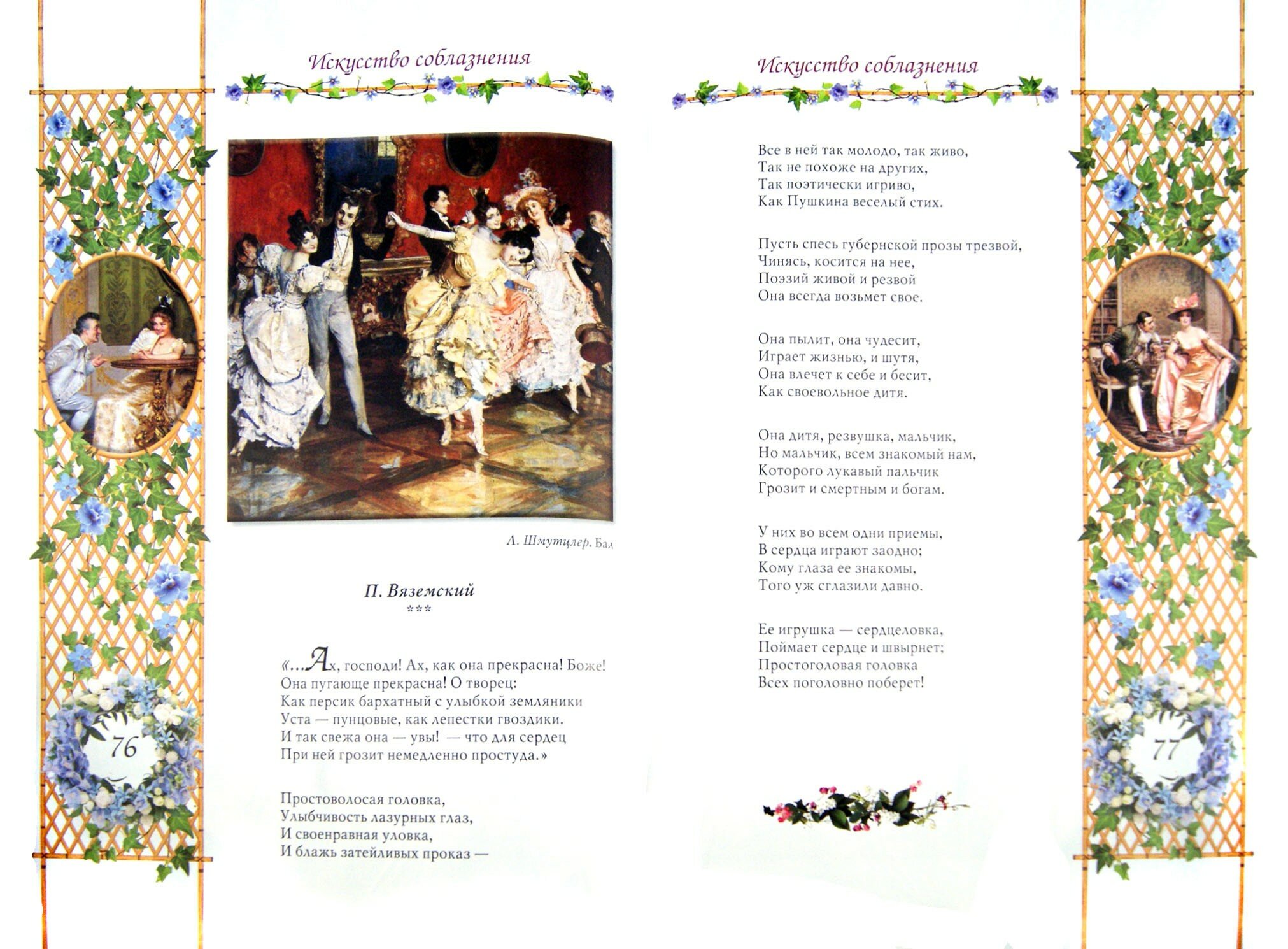 Подарочное издание посвящено всем аспектам отношений между мужчиной и женщиной. Первая встреча и поцелуй, нежные объятия и слепая ревность - чувства, знакомые каждому из тех, кто встречал на своем пути Любовь. Но только настоящие мастера слова и гении кисти сумели воплотить в литературе и на холсте самые яркие оттенки разнообразных любовных переживаний, которые близки всем поколениям людей.