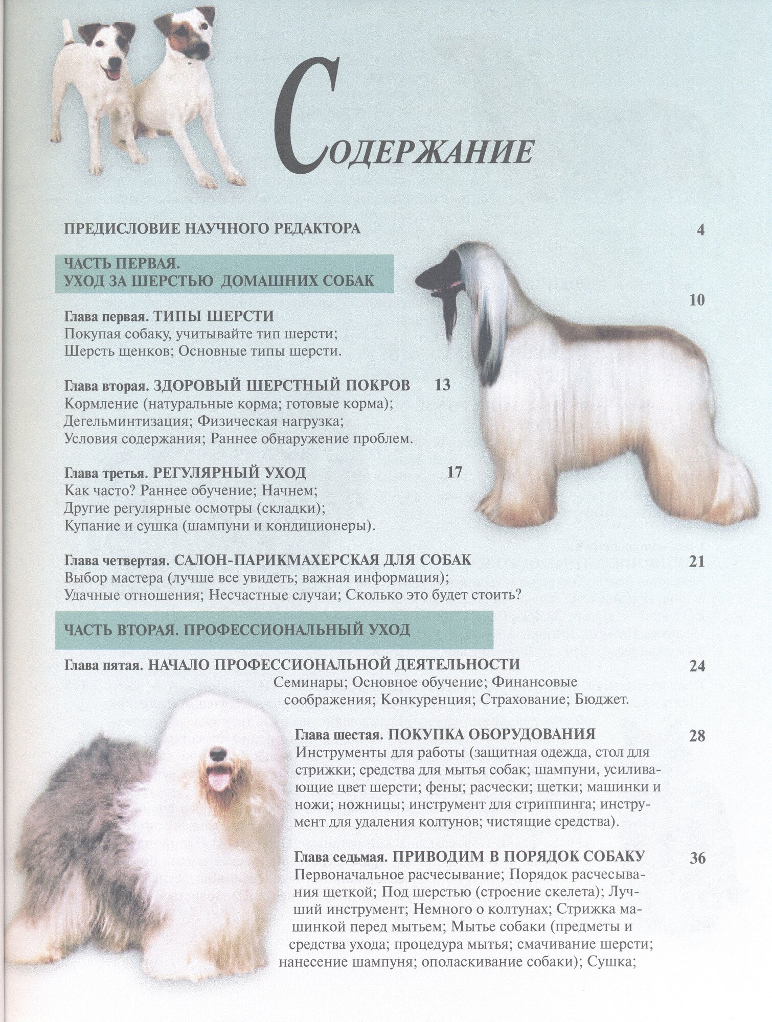 В книге содержатся советы по всем аспектам ухода за собаками, как для владельцев домашних и выставочных собак, так и профессионалов, пошаговые инструкции по уходу за каждой породой, фотографии отличного качества и рисунки. Описание более чем 170 пород превращает настоящую книгу в необходимое руководство для всех грумеров.