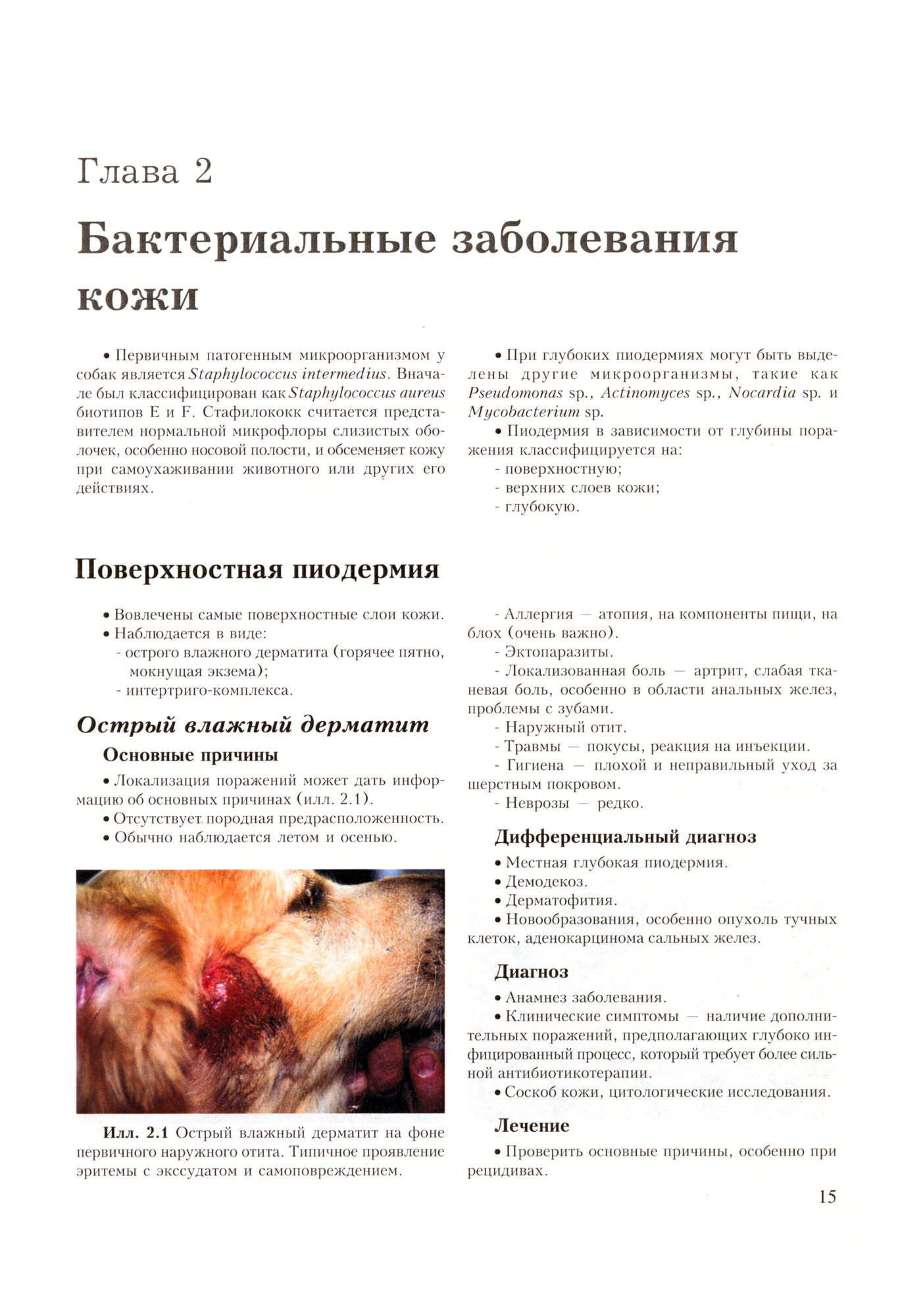 Книга представляет собой полный справочник для практикующего ветеринара по наиболее распространенным кожным заболеваниям и недавно выявленным специфическим дерматозам собак. Она не только стала настольной книгой ветеринарных врачей, но и широко используется студентами при обучении. Каждая глава посвящена различным видам кожных заболеваний и сопровождается описанием клинических проявлений и диагностикой каждого случая. Особое внимание уделяется тем диагностическим методикам, которые сможет применять на практике каждый ветеринарный врач.
