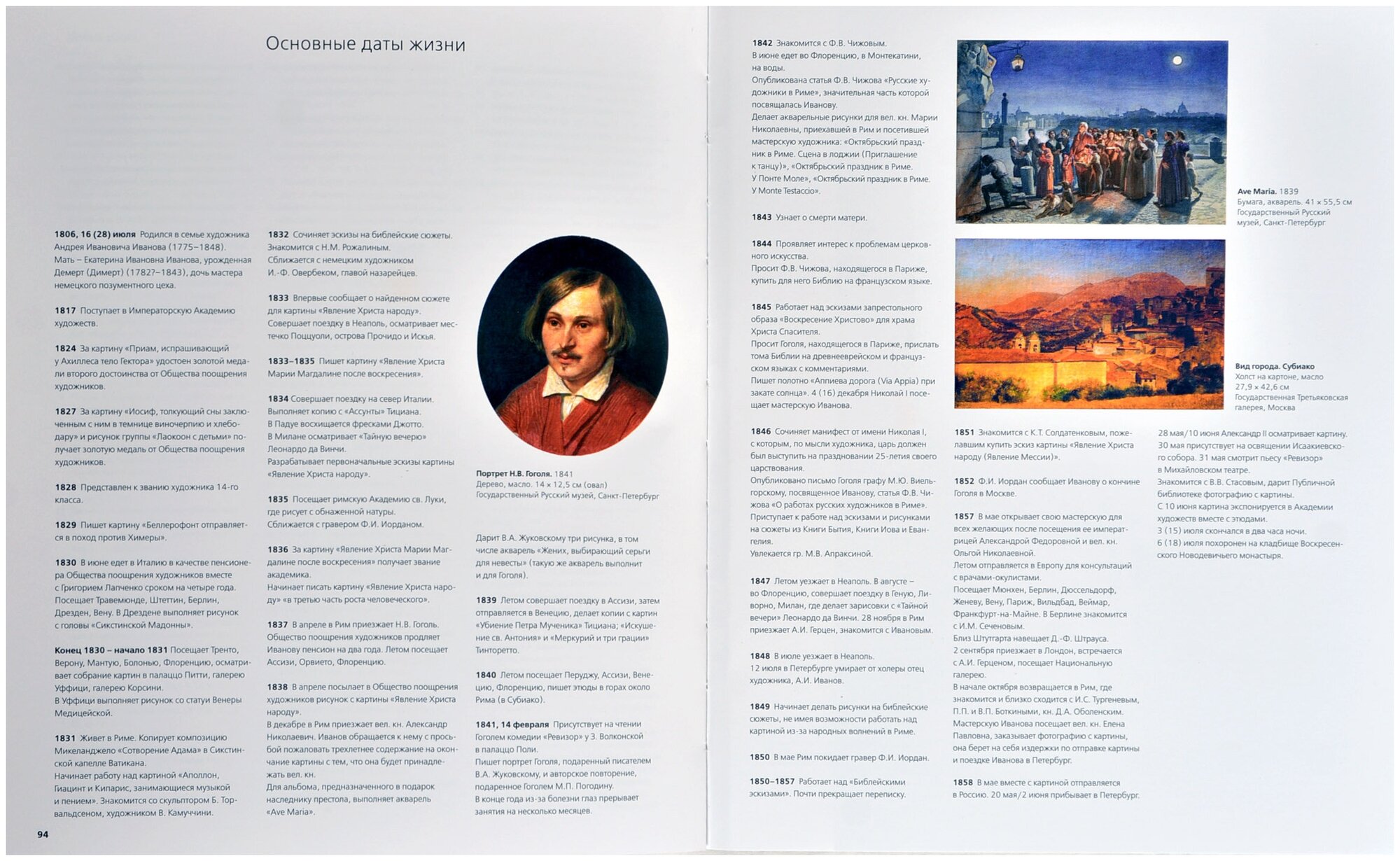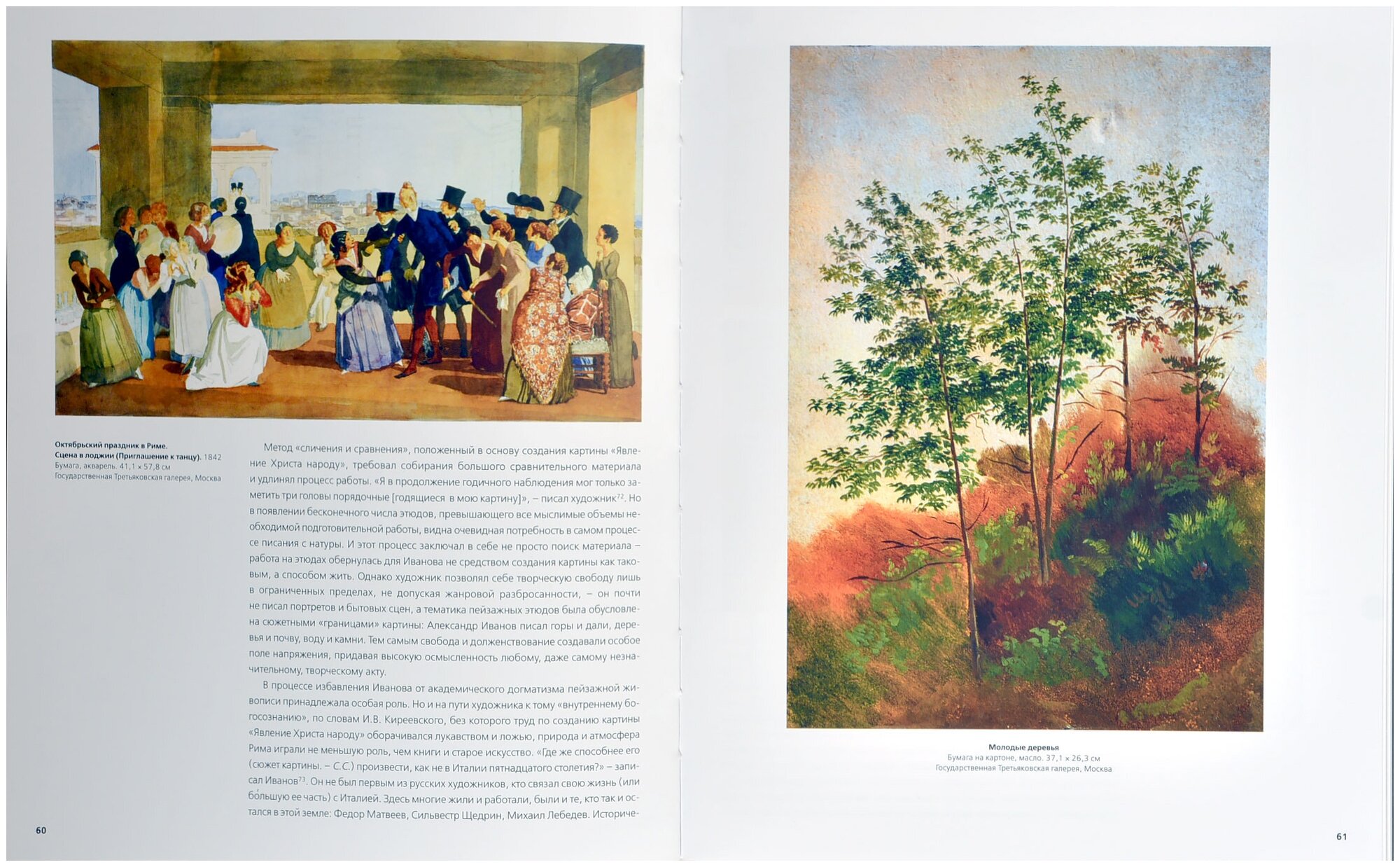 Книга отличного качества. Исследование С.С. Степановой содержательно: представлена биография художника, искусствоведческий анализ его работ и выдержки из его писем и воспоминаний. Автор также описывает мифологический и библейский контекст того или иного сюжета картины. Наряду с картиной "длиною в жизнь" в книге даются репродукции многочисленных этюдов к ней, рисунки с натуры, итальянские пейзажи и акварели. В конце альбома представлены основные даты жизни художника и библиография. Отличное издание!