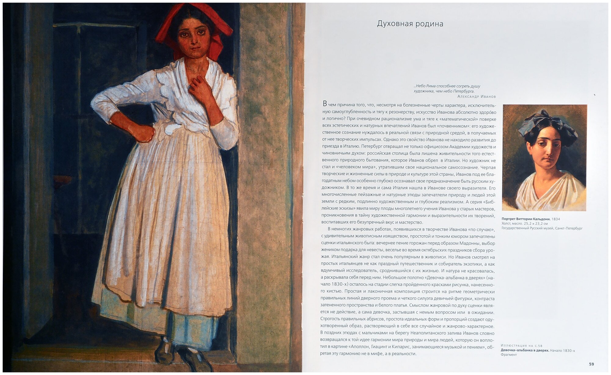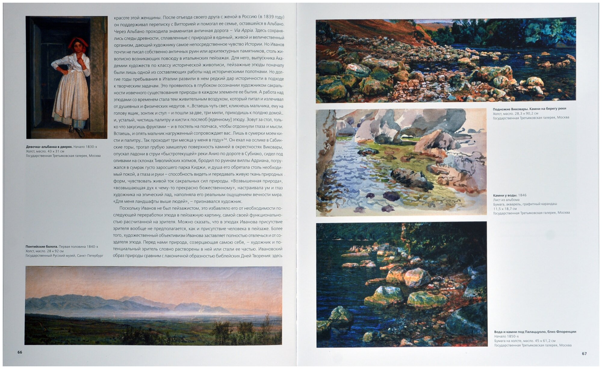Творчество знаменитого живописца Александра Андреевича Иванова принадлежит к величайшим явлениям русской культуры, а его неординарная личность представляет не меньший интерес, чем созданные им произведения. Детство и юность художника прошли в домашней и академической среде, изолированной от социальной жизни и во многом достаточно искусственной. Абсолютный русофил, он практически не знал России и ни разу не был даже в Москве, не выезжая в годы учебы из Петербурга "дальше Парголова". Его духовной родиной стала Италия. Иванов, как никто другой, был обеспокоен судьбой отечественной культуры и ощущал себя в Риме - столице искусств, "полномочным представителем" русского искусства, призванным возвысить его среди европейских держав. Центральным произведением Александра Иванова стала картина "Явление Христа народу (Явление Мессии)". Ей было отдано много лет работы и глубоких раздумий, с ней связаны моменты высочайшего творческого подъема и самых горьких сомнений, а многочисленные этюды к картине приобрели самостоятельное художественное значение.