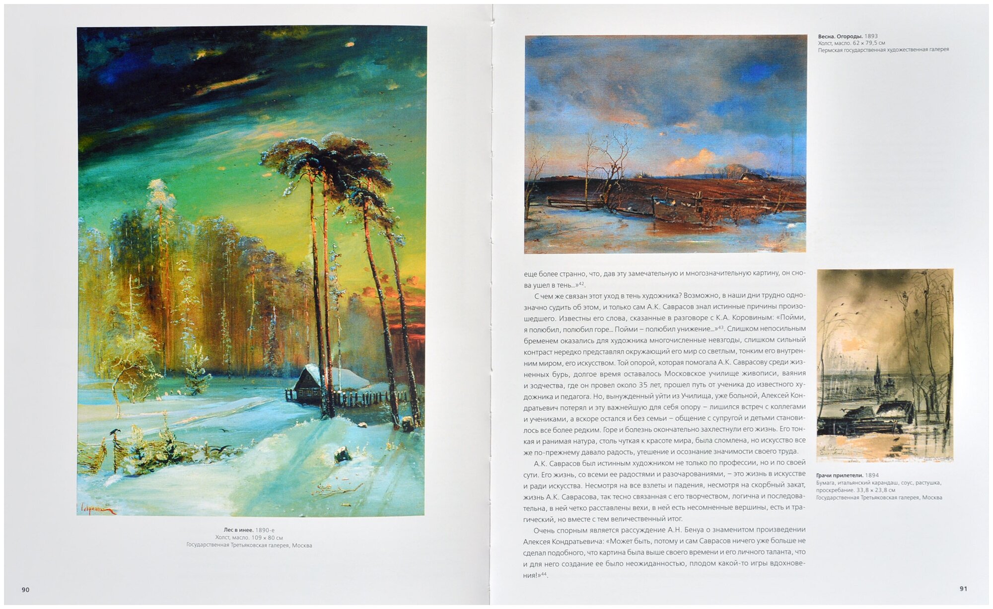 Раньше о А. Саврасове знала лишь то , что он написал великолепную картину "Грачи прилетели". Книга содержит подробную историю жизни художника и рассказывает о поиске Саврасова своего собственного стиля, который его прославил, как он прошел путь от академического пейзажа , как писал горы , как писал рассветы и закаты, как нашел свою собственную структуру "русского пейзажа". Также издание содержит подробный анализ картин художника, представленных в книге. Полноценным альбомом репродукций картин художника эту книгу назвать нельзя, так как формат маленький и иллюстрации в основном небольшого размера, но хорошего качества.
