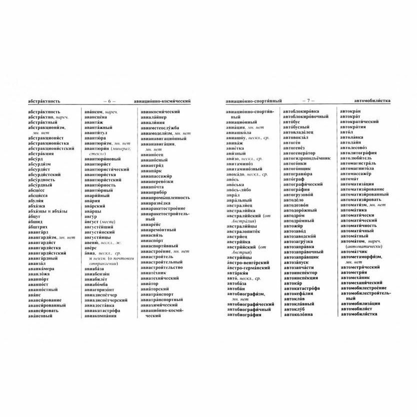 Словарь заказывала сыну-школьнику, несколько отличается от моего словаря в детстве толщиной (почти в 2 раза), соответственно и слов больше. Единственное замечание которое хотелось отметить: Словарь создан с учетом современных норм русского языка. Например: Кофе-м.р, ср.р. Для переноски в школу тяжеловат, я бы оставила только для домашнего пользования. Качество исполнения - хорошее. Оценка 4