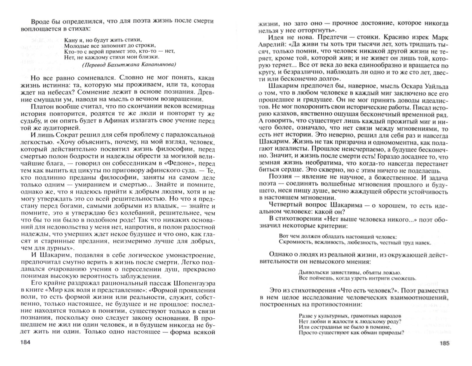 Жизнь Шакарима Кудайбердиева (1858-1931) оборвалась трагически - от пули чекиста. Ранняя безотцовщина, но воспитание под сенью дедовских заветов, приобщение к литературному творчеству под влиянием дяди, поэта-мыслителя Абая Кунанбаева, путешествие в Стамбул и Мекку, пример Л. Н. Толстого и отшельничество, дальнейшее восхождение к духовной жизни - все это воплотилось в его философию "наука совести". Привлекаемый по статье как враг народа, он был реабилитирован, но запрет на творчество поэта, теперь уже обвинявшегося в "буржуазном национализме", продолжал действовать. Самобытный талант, незаурядный ученый, он стал широко известен лишь в конце XX века, когда его произведения стали доступны широкому кругу читателей. Автор, профессор, доктор исторических наук, создал целостное жизнеописание Шакарима Кудайбердиева - феноменальной личности, поэта, философа, историка, музыканта, переводчика.