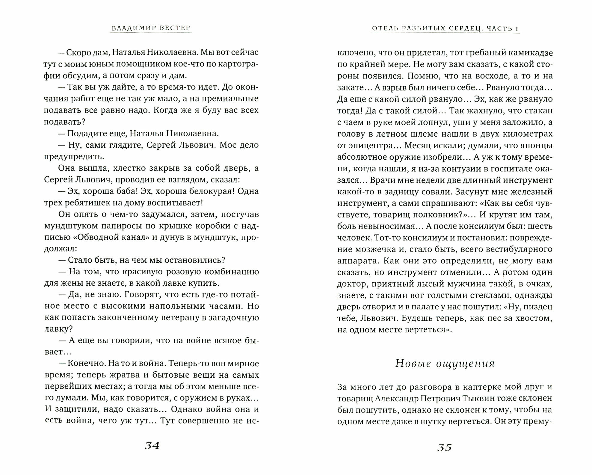 "Новая книга Владимира Вестера, роман "Отель разбитых сердец", название которой отсылает к знаменитой песне Элвиса Пресли, является в каком то смысле современной летописью, так как время ее действия охватывает более шести десятилетий - один из главных героев родился на следующий день после смерти Сталина и продолжает размышлять, шутить, рефлексировать, пить портвейн и другие душевные напитки уже в наши дни. Место действия - вечный город Москва, жанр - ироническая фантасмагория, сплав сатиры Михаила Зощенко и иронии Василия Аксенова. Однако иронией и тем более сатирой проза Владимира Вестера не исчерпывается, мы бы отнесли и ее, и ее автора к романтикам, новым романтикам, продолжателям дела русского романтизма XIX века, причем романтикам неисправимым , которые продолжают говорить о совести, любви, доброте и чести даже в Москве "нулевых" и "десятых" годов XXI века". Слава Сергеев