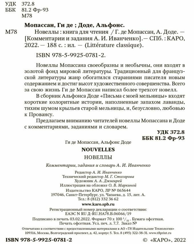 Сервис сравнения цен СкидкаГИД предлагает сравнить цены на товар «Книга: Новеллы. Книга для чтения на французском языке (Maupassant Guy de, Daudet Alphonse); Каро, 2022»