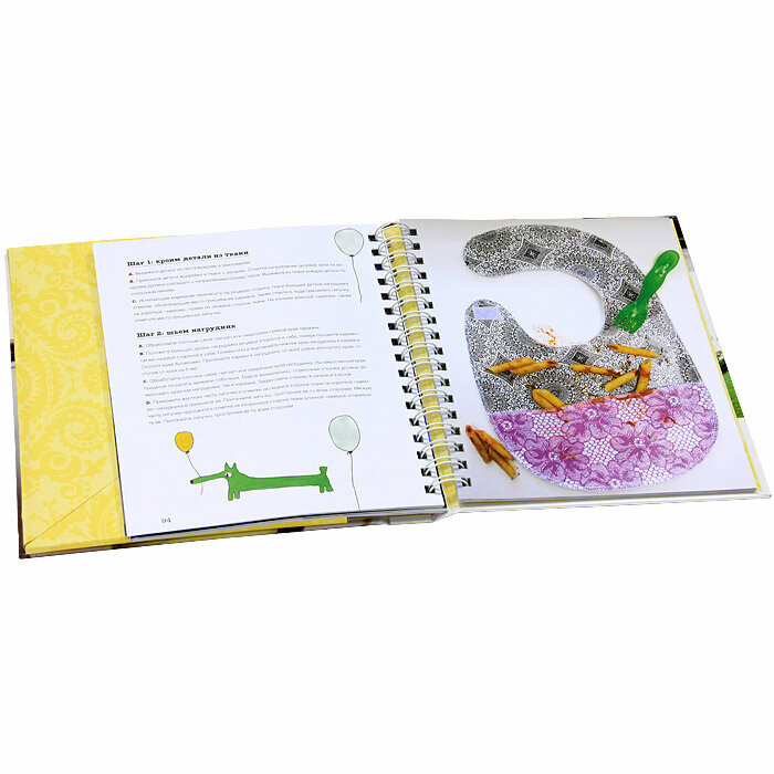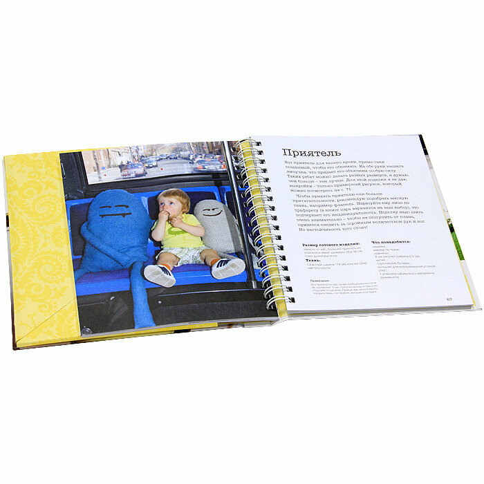 У книги твердая картонная обложка, страницы на спирали. Сбоку прикреплен конверт с выкройками.