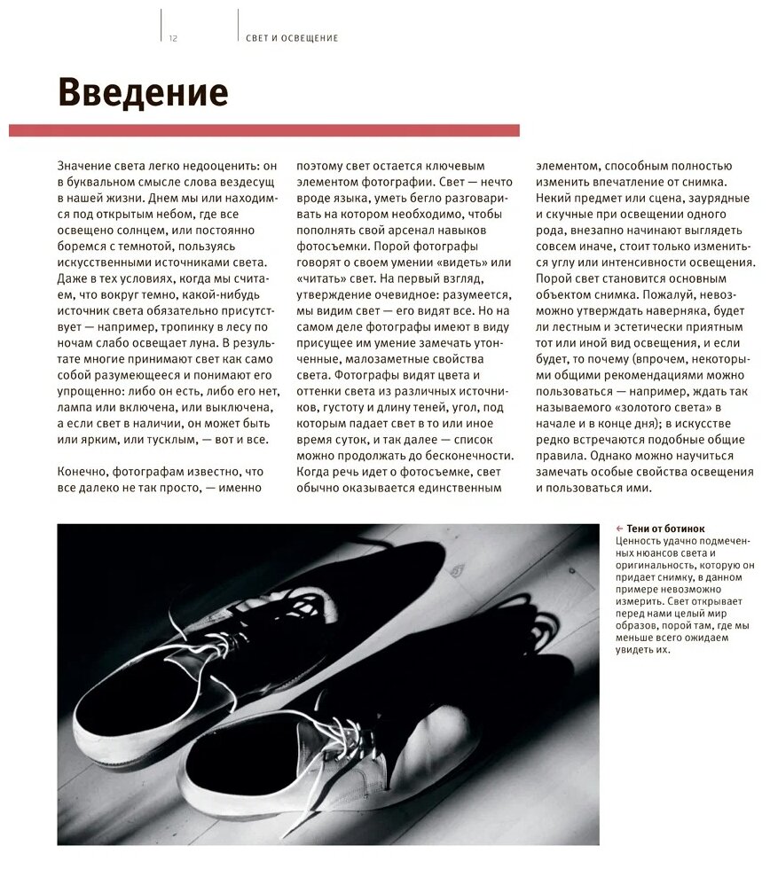Полиграфия и оформление на высоте! Книга состоит из разделов: Основы, Дневной свет, Искусственный свет, Фотографическое освещение, Творческое использование освещения. Дает не только теоретическую информацию, но и практические знания по основам использования света в фотографировании. Мне, как любителю, она была полезна! Другой вопрос, стоит ли она таких денег...