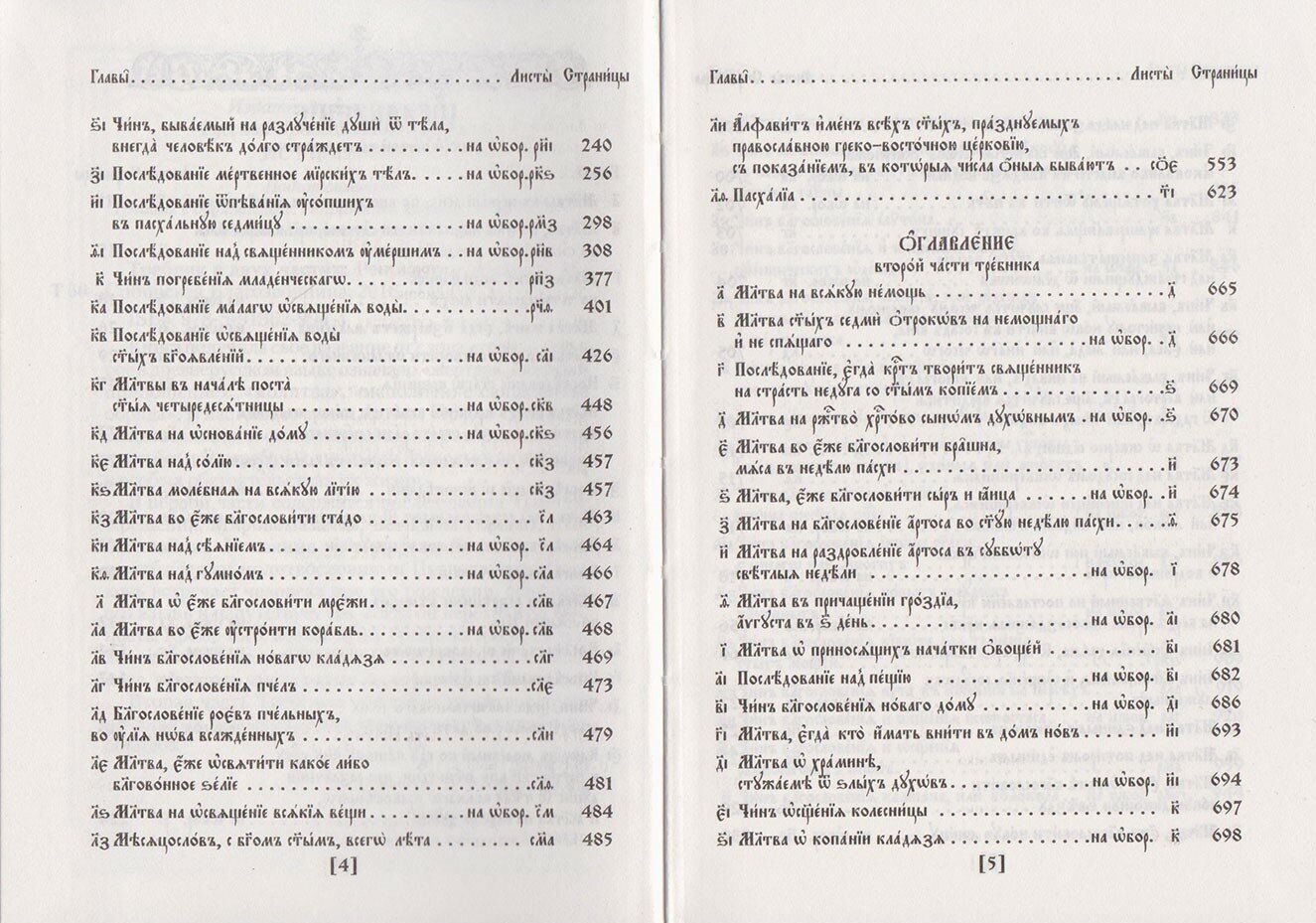 Вторая часть Требника содержит молитвословия различных богослужебных и религиозно-житейских обрядов.