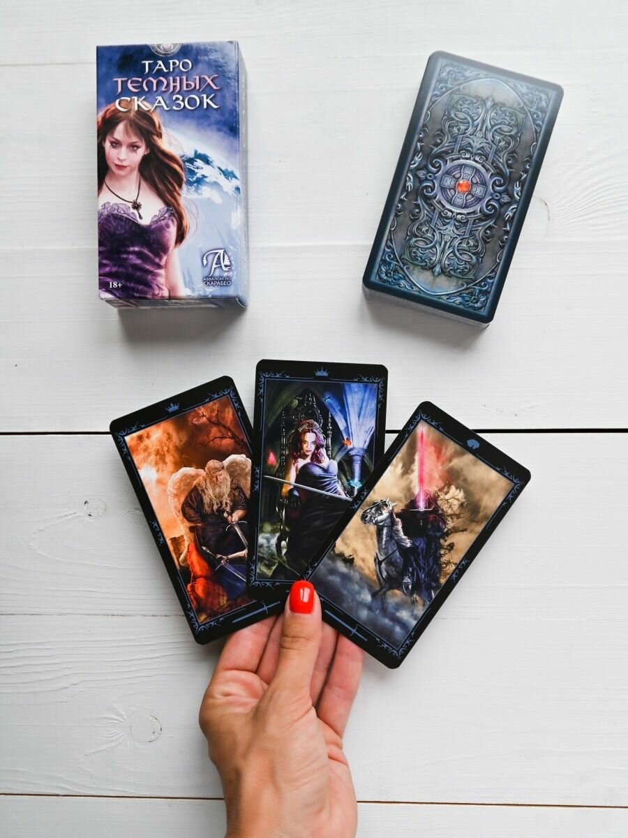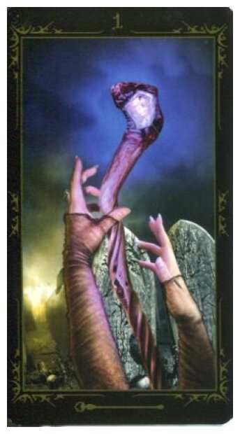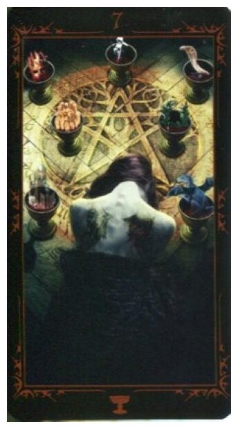Любителям темных колод посвящается)))) Хорошая колода, красивая, даже рубашка у карт очень красивая. Мне карты понравились, я люблю образы в таком стиле. Колода стоит своих денег, качество отличное. Иллюстрации выполнены в технике компьютерной графики, достаточно качественно. У колоды есть индивидуальность и чувствуется мощная энергетика.