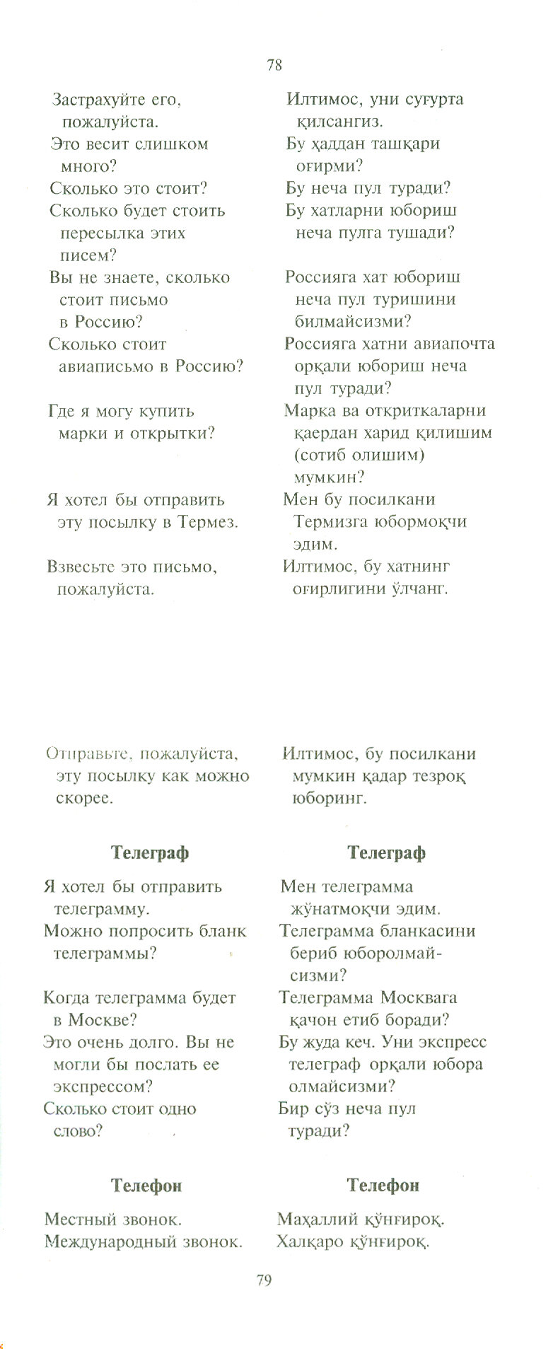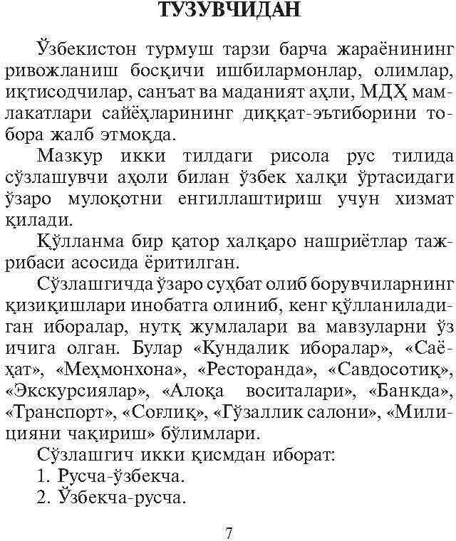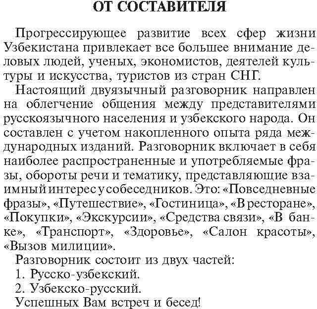 Вашему вниманию предлагается русско-узбекский и узбекско-русский разговорник.