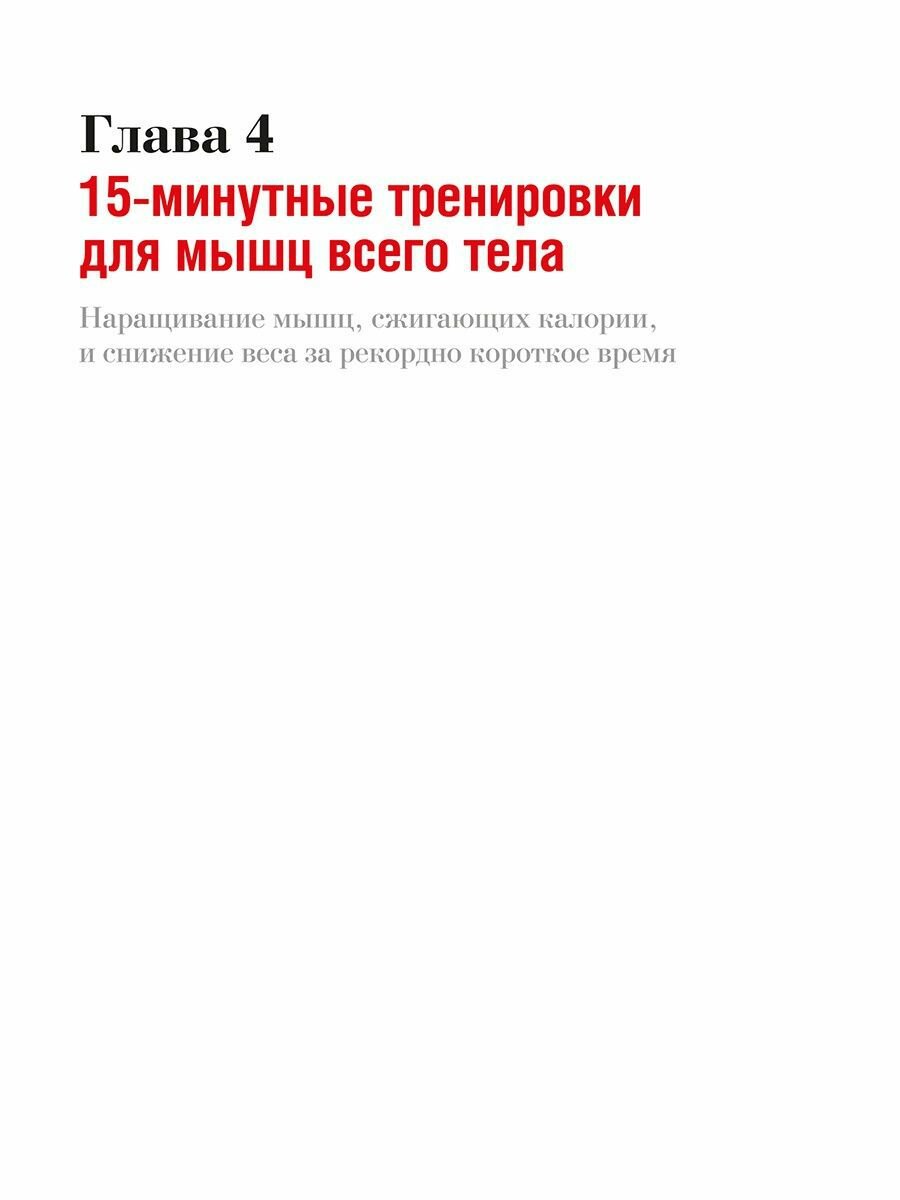 Большая книга 15-минутных тренировок от журнала "Men's Health" - последнее пособие по фитнесу, какое вам когда-либо понадобится. Почему? Потому что в нем так много всевозможных упражнений, собранных в такое множество разнообразных комплексов, что вам хватит их на всю оставшуюся жизнь. И каждый из этих комплексов можно выполнить всего за 15 минут! Новые исследования показывают, что 15-минутная тренировка по эффективности сжигания калорий не уступает получасовой. Это означает, что вы можете достичь быстрых результатов - сбросить 5, 10, 15 килограммов веса и даже больше, создать мускулистую грудь, мощные руки и широкие плечи - за половину обычного времени!