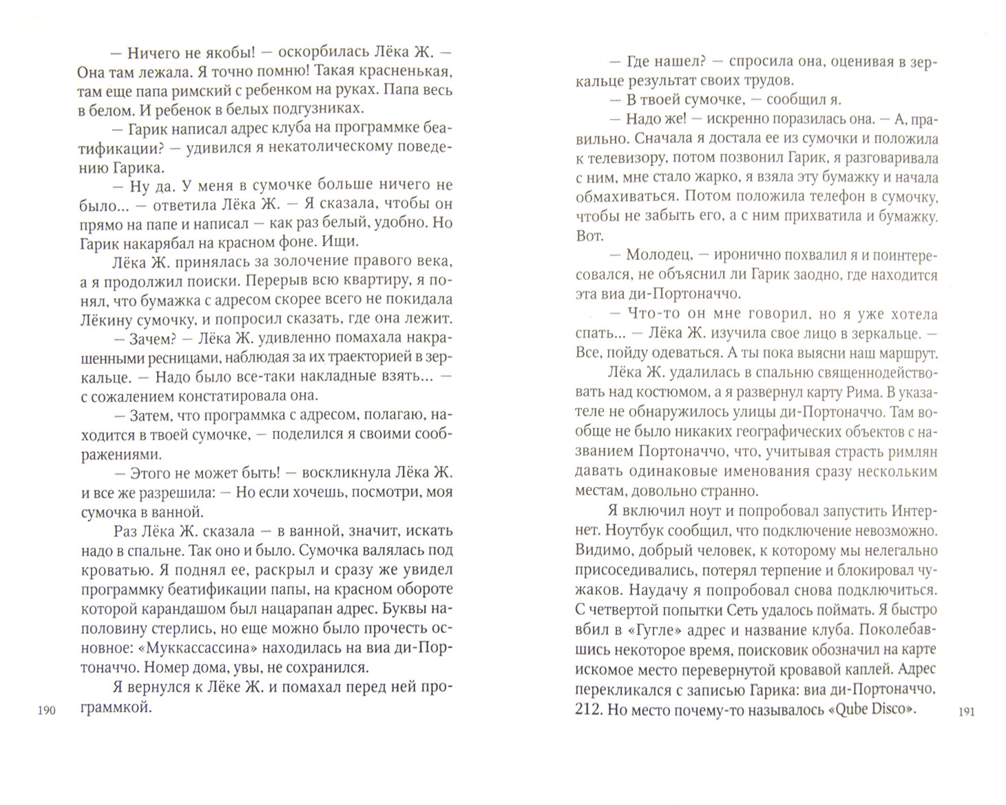 "Роман" и "путеводитель" - это слишком громко и пафосно сказано. Но сама по себе книга интересная, читается легко. Забавный главный персонаж - Лёка Ж. не дает скучать. В некоторых случаях можно взять на заметку описываемые достопримечательности и посетить их при посещении Рима. Если Вы собираетесь в Рим, советую взять для чтения в самолете. Время пройдет быстро и с пользой.
