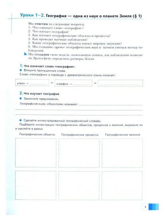 Мой ребенок достаточно самостоятелен, и привлекает меня для помощи крайне редко. Но не в случае с географией Летягина. Про учебник отдельный разговор.Дневник же географа-следопыта, создается впечатление, был составлен отдельно от учебника. Ответы на вопросы, задаваемые в данном пособии, можно найти только в интернете. Темы в учебнике даются в очень усеченном формате и очень кратко, без раскрытия особенностей приведенных понятий. В дневнике же, напротив, требуется указать много нюансов, о которых в учебнике даже не упоминалось. Отдельно хочется сказать про фотографии в данном пособии. На мелких черно-белых картинках практически невозможно понять, где гора, где холм, где долина. А именно по этим фотографиям и предлагается дать ответы на вопросы. Как ребенок сможет понять, что там изображено, если даже взрослому это не понятно (не в силу неграмотности, а силу плохого качества картинок)?