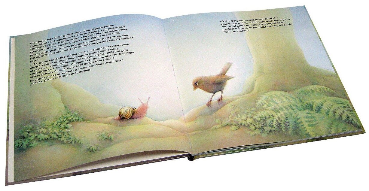 Книга нам с дочерью, ей 2,6, очень понравилась. Добрейшая история о путешествии лягушки, пчелы и улитки в поисках чуда - падающего с небес белого снега..Какой он? Путешественники так хотели это узнать, что не обращали внимания на трудности долгого пути..