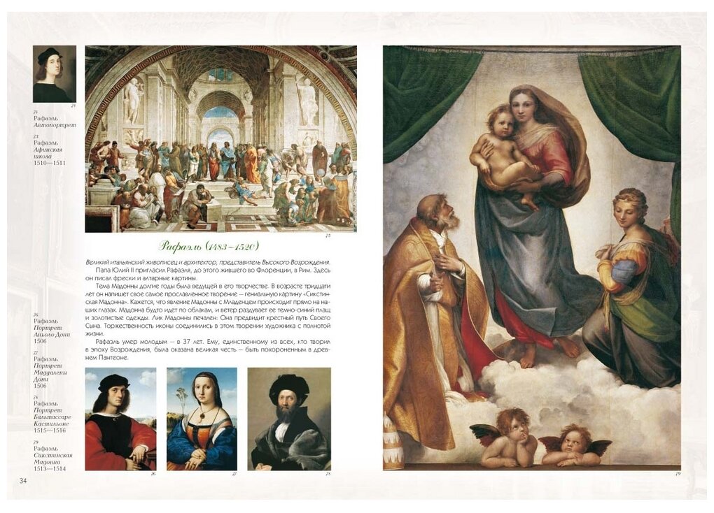 Очень красивая книга. Удобна для первого знакомства детей с миром живописи, да и некоторым взрослым не помешает для расширения кругозора. Хотелось бы, чтобы иллюстрации были крупнее, но и в таком виде есть , чем заинтересоваться, по крайней мере, моя 14-летняя дочь листает с удовольствием.