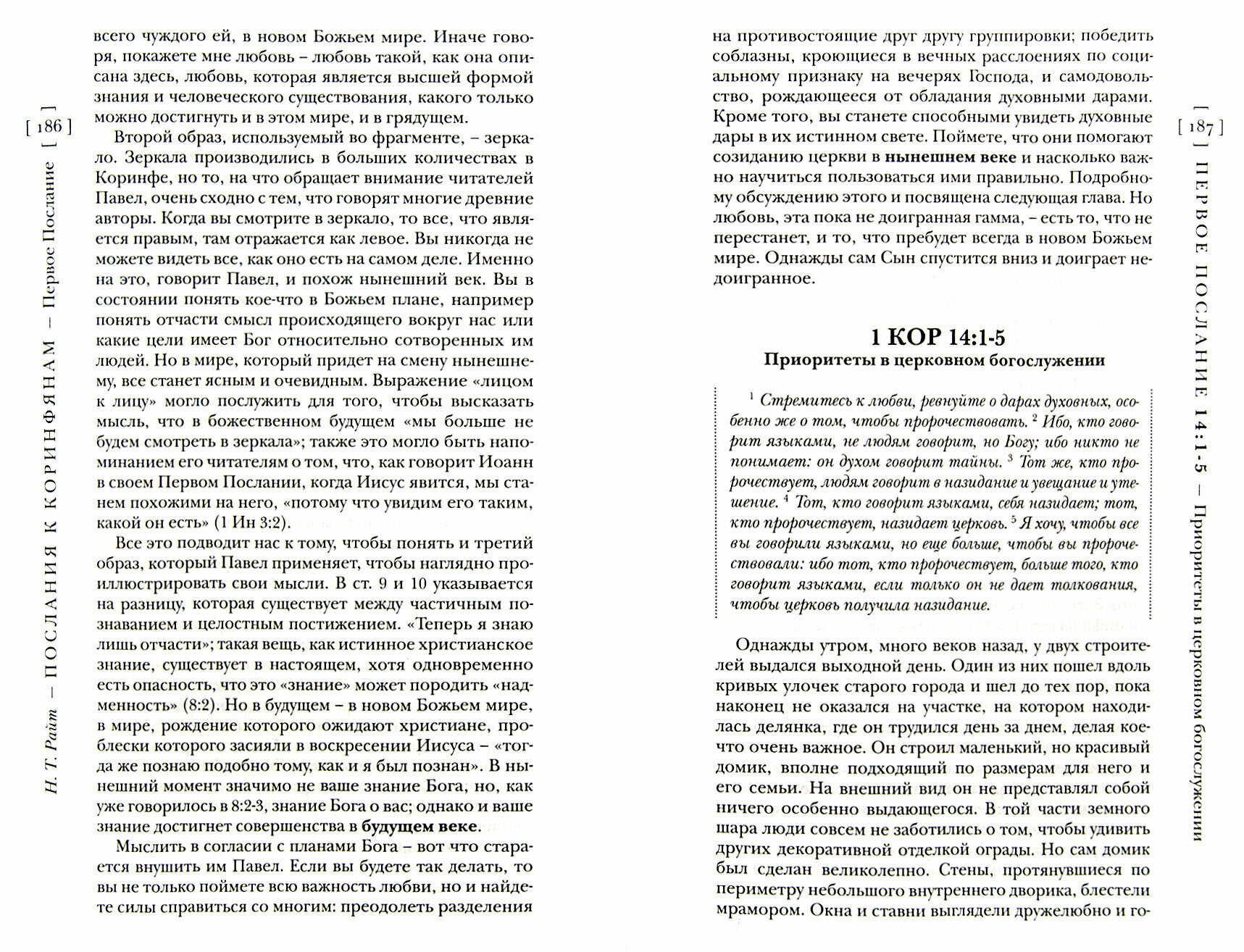 Искусно используя свои глубокие знания ученого, и излагая доступно и увлекательно, Райт описывает жизнь многонационального Коринфа и приоткрывает нам мудрость и остроту Павловых текстов, заключенные в них пастырскую проницательность и глубокие мысли, благодаря которым эти послания являются одним из высочайших достижений апостола.