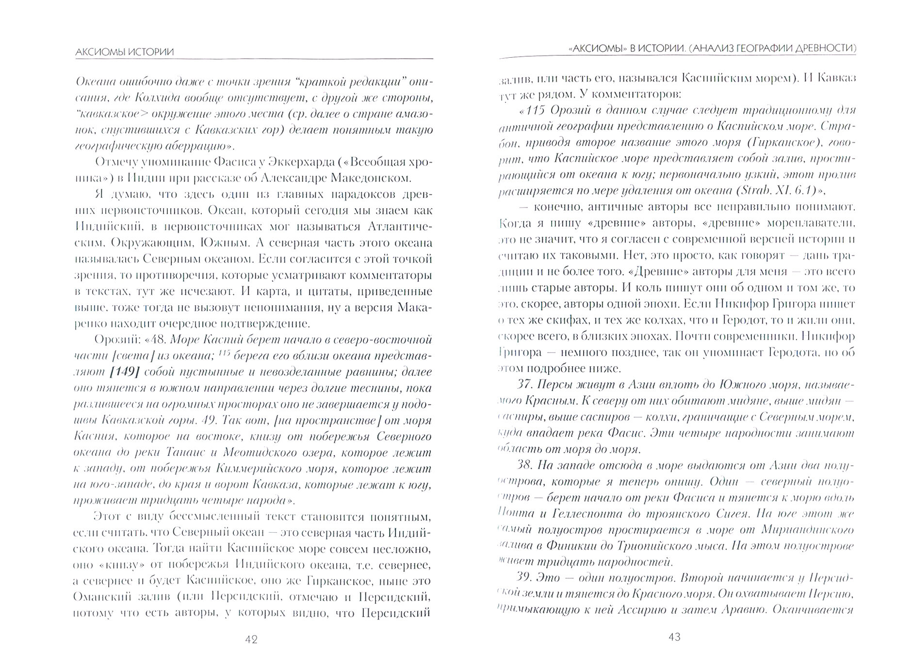 Книга К. Нивникова \"Аксиомы истории. Анализ географии древности\" принадлежит к жанру альтернативной истории. Автор доказывает, что события античности происходили либо не в тех местах, которые указываются в работах традиционных историков, либо их вообще не было. Работа состоит из огромного множества цитат из произведений Страбона, Плутарха, Прокопия Кесайрийского и многих других древних историков и географов. Их автор анализирует, находит множество нелепостей, спорит с современными комментаторами или указывает на отсутствие комментариев. Труд К. Нивникова любопытен, необычен, вполне убедителен, но интересен и полезен он всё-таки узким специалистам, историкам античности, специалистам по древней географии или в крайнем случае любителям, глубоко погруженным в тему. Это не беллетристика: на диване, за обедом, в гамаке на даче. Читать книгу нужно вдумчиво, обязательно вооружившись географической картой и, желательно, зная первоисточники и мнения традиционной исторической науки. \"Аксиомы истории\" издана в мягкой обложке, но приятно, очень интересен небольшой раздел \"Географические объекты - аналоги\", едва ли не треть книги составляют приложения - цитаты из \"Истории Ширвана и Дербента\" Муруджа ад-Дзахаба и произведений Страбона