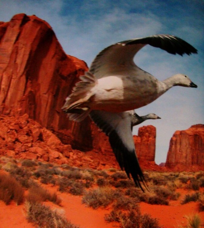 «Горные гуси мигрируют прямо над вершинами гор, на высоте до 10 000 метров – это самая высокая миграция в птичьем мире. Тепло, вырабатываемое телом птицы, защищает их крылья от обледенения».