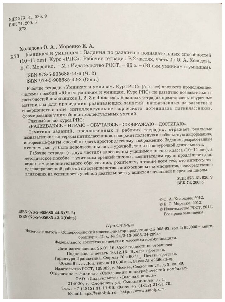 Сервис сравнения цен СкидкаГИД предлагает сравнить цены на товар «Книга: Умникам и умницам. Задания по развитию познават. способностей (10-11 лет). Раб. тетрадь. В 2 ч. (Ольга Александровна Холодова); РОСТкнига, 2016»