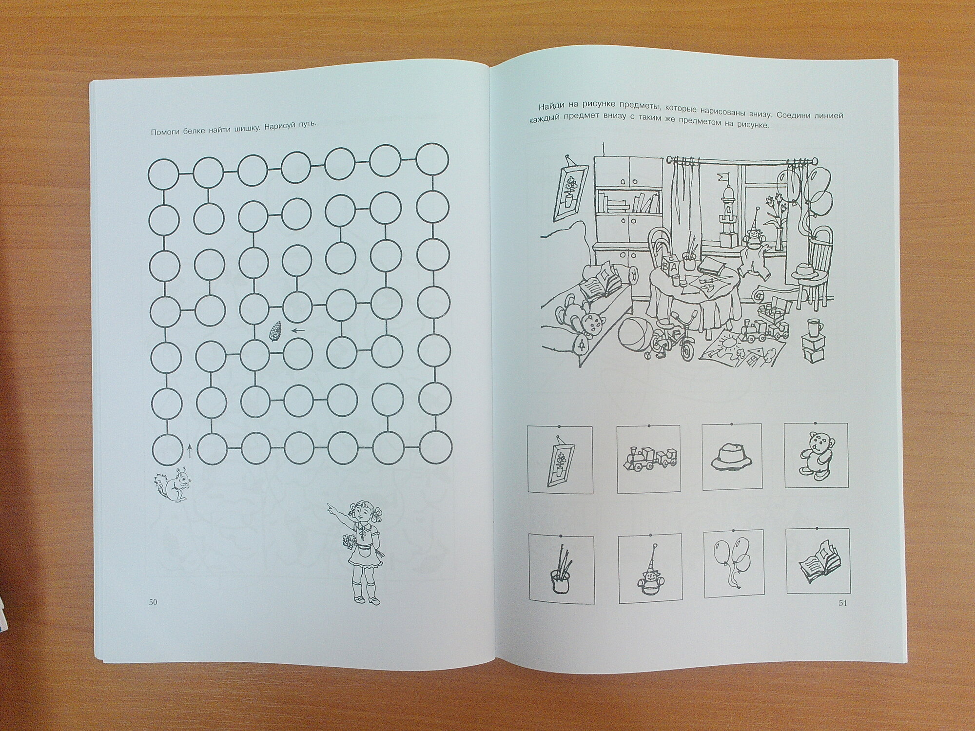 Занимаясь, ребёнок развивает логику, мышление, внимание, память. Содержание по принципу от простого к сложному, здесь нужно найти и отличия и соответствие, предлагается пройти небольшие лабиринты, сгруппировать по какому-то признаку предметы и ещё множество интересных заданий. Заниматься точно не будет скучно!