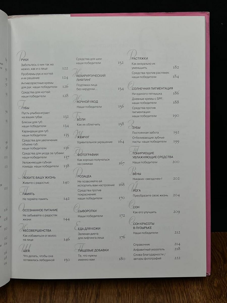 Рейтинг косметических средств перемежается со статьями об уходе за своей внешностью, здоровьем. В этой книге можно прочесть не только о косметике, но и о том, как, например, бороться с бессонницей, рассказывается с какими проблемами с зубами можно столкнуться с возрастом и что с этим делать, и т.д.