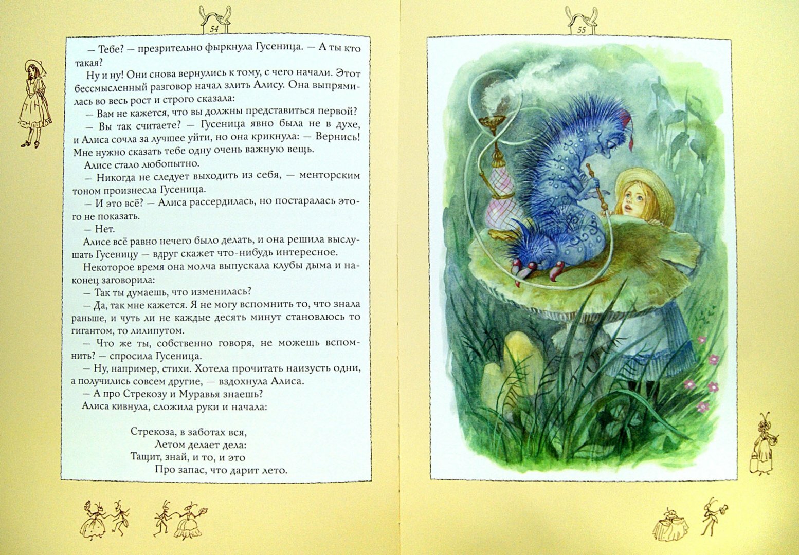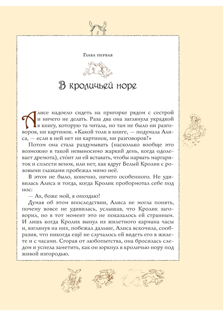 Что понравилось в книге. Текст. Почитала отрывки, перевод очень достойный: читать легко, конечно, заходеровский почти выучен с детства и как будто сам всплывает из памяти, но и на этом не спотыкаешься, а как будто лавируешь среди не совсем знакомых оборотов. И лично для меня это показалось плюсом, пусть уж мой ребенок познакомится впервые с другой Алисой.