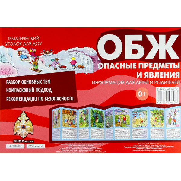 Ширмочки. ОБЖ. Опасные предметы и явления. Тематический уголок для детей и родителей. Шипунова В. А.Наглядно-методическое пособие (ширмочка) для организации тематического уголка в дошкольном общеобразовательном учреждении. Информация для детей и родителей. Разбор основных тем. Комплексный подход. Рекомендации. Материал: картон.