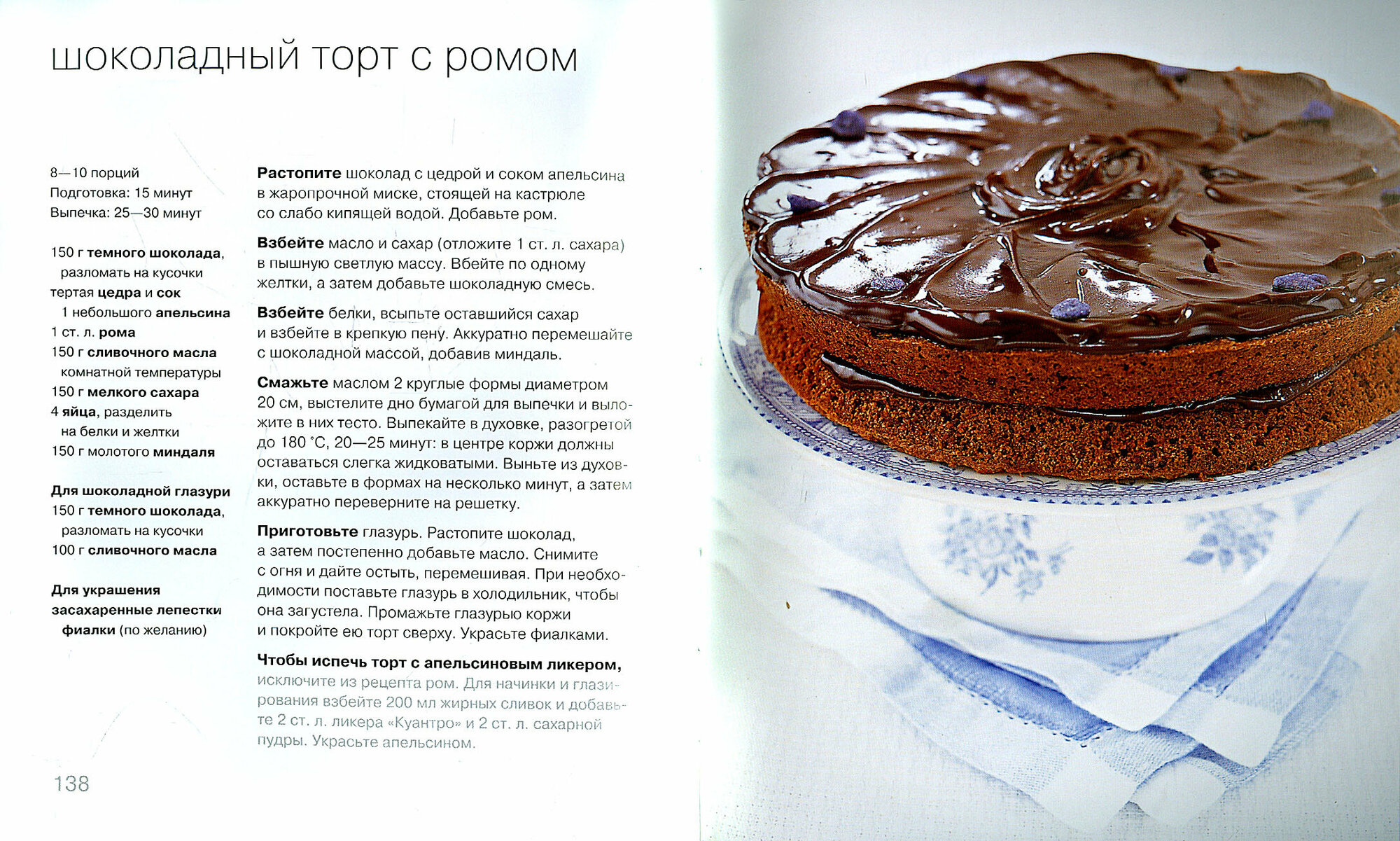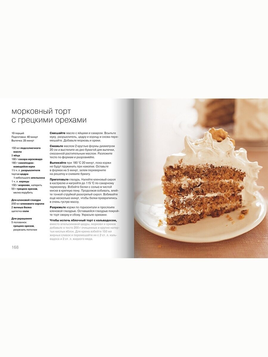 Что еще хорошо в этой книге, что почти к каждому рецепту дается небольшая замена ингредиентов и что нужно сделать. Т.е. если вы читаете про шоколадный торт с ромом, то заменив составляющие вы можете испечь торт с апельсиновым ликером. И в итоге в книге уже не 100 пирогов и тортов, а гораздо больше. -