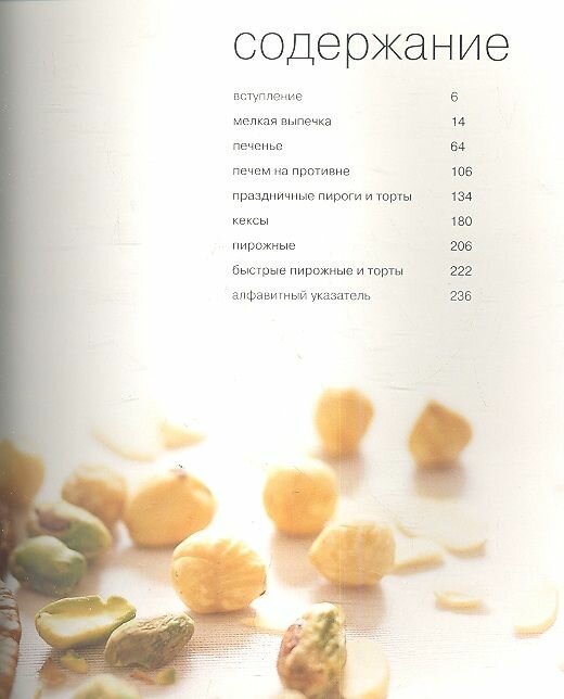 Книга построена скорее как бабушкина тетрадка с рецептами, только каждый рецепт сопровождается красочной иллюстрацией. На каждом развороте по рецепту: перечень продуктов и краткое описание процесса приготовления. В начале книги дано вступление, полезное скорее для тех, кто только начинает печь.