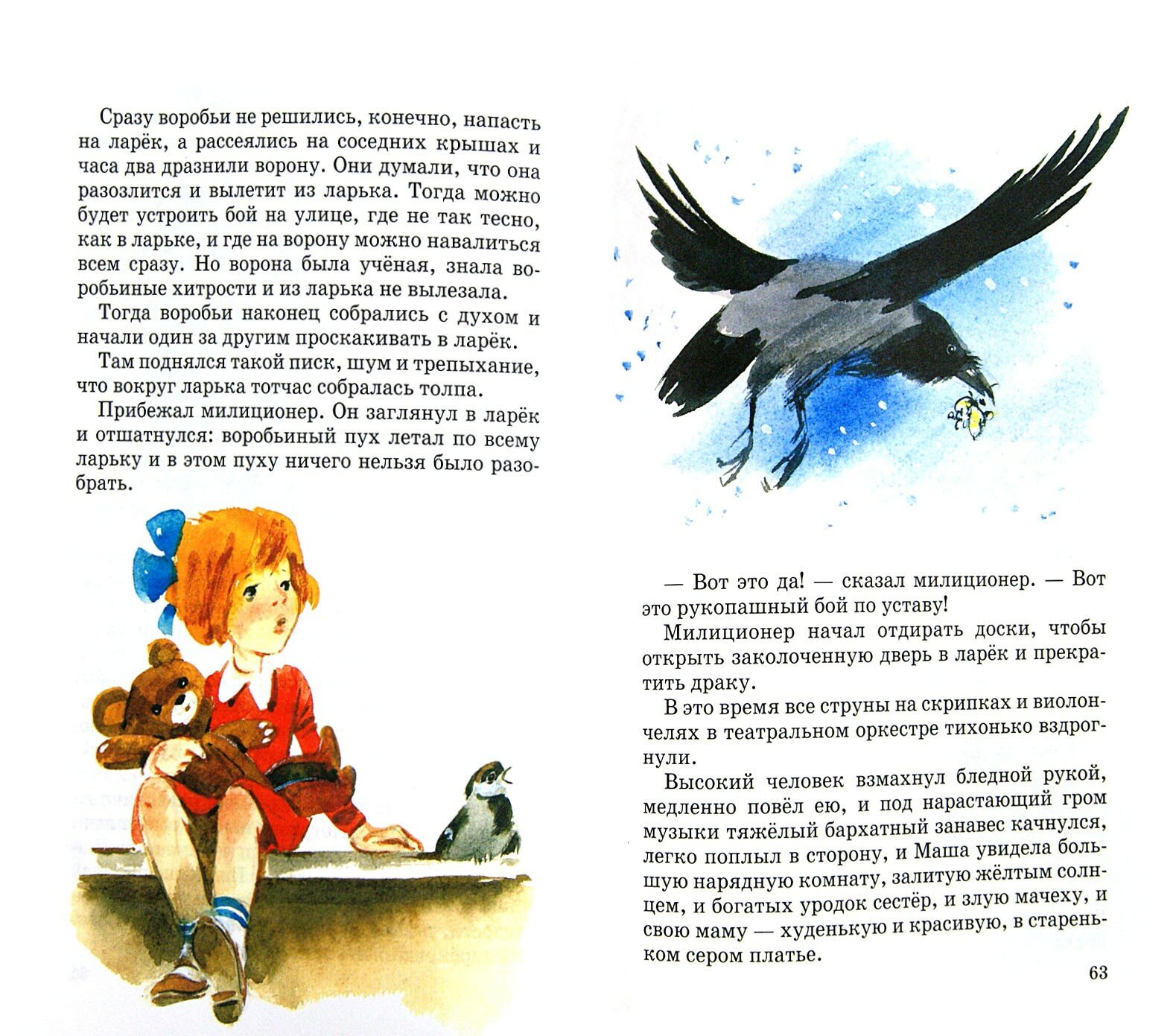 Замечательная книга: белые плотные страницы, чёткий шрифт и цветные иллюстрации одного из наших любимых художников Владимира Дугина. Рисунки встречаются примерно через два разворота. В книгу Константина Георгиевича Паустовского вошли самые известные его Рассказы. Я с удовольствием читала их в детстве. "Пронзительные" - самое, пожалуй, точное определение.