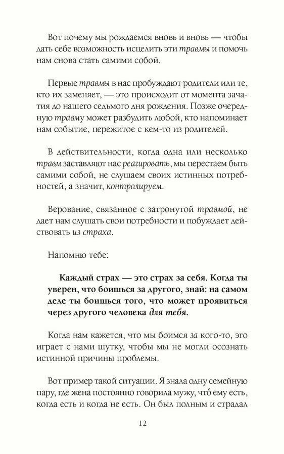 В своей новаторской книге Лиз Бурбо дает много важных подсказок и советов, которые помогут взглянуть под новым углом на отношения, сложившиеся у тебя с твоей тарелкой. Ты увидишь тесную связь между физическим телом и твоим эмоциональным, ментальным и духовным состоянием.Эта книга ставит своей целью:- показать тебе, что кроме голода есть шесть других причин, побуждающих нас есть;- помочь тебе осознать, насколько и каким образом ты контролируешь питание и как пагубно это может на тебе сказаться;- подсказать, как определить одну из ПЯТИ ТРАВМ, которые мешают тебе иметь желаемый вес;- помочь тебе полюбить себя в своем теле — таким, как ты есть прямо сейчас.