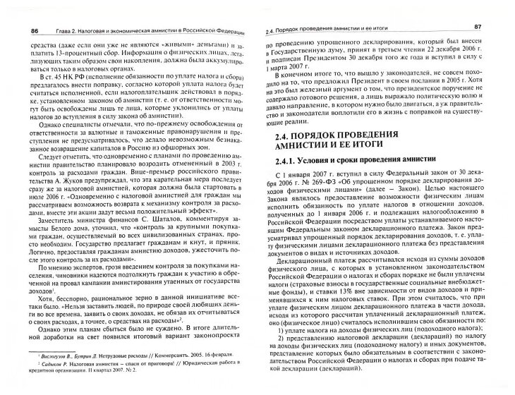 Термин "налоговая амнистия" принят нами как условный, так как под ним нередко понимают и легализацию капиталов, и экономическую амнистию, и реструктуризацию налоговой задолженности, и еще ряд мероприятий, направленных на снижение налогового бремени или упрощение процедур налогового администрирования. Ведь не случайно введение 13-процентной ставки налога на доходы физических лиц преподносилось представителями власти именно как налоговая амнистия.