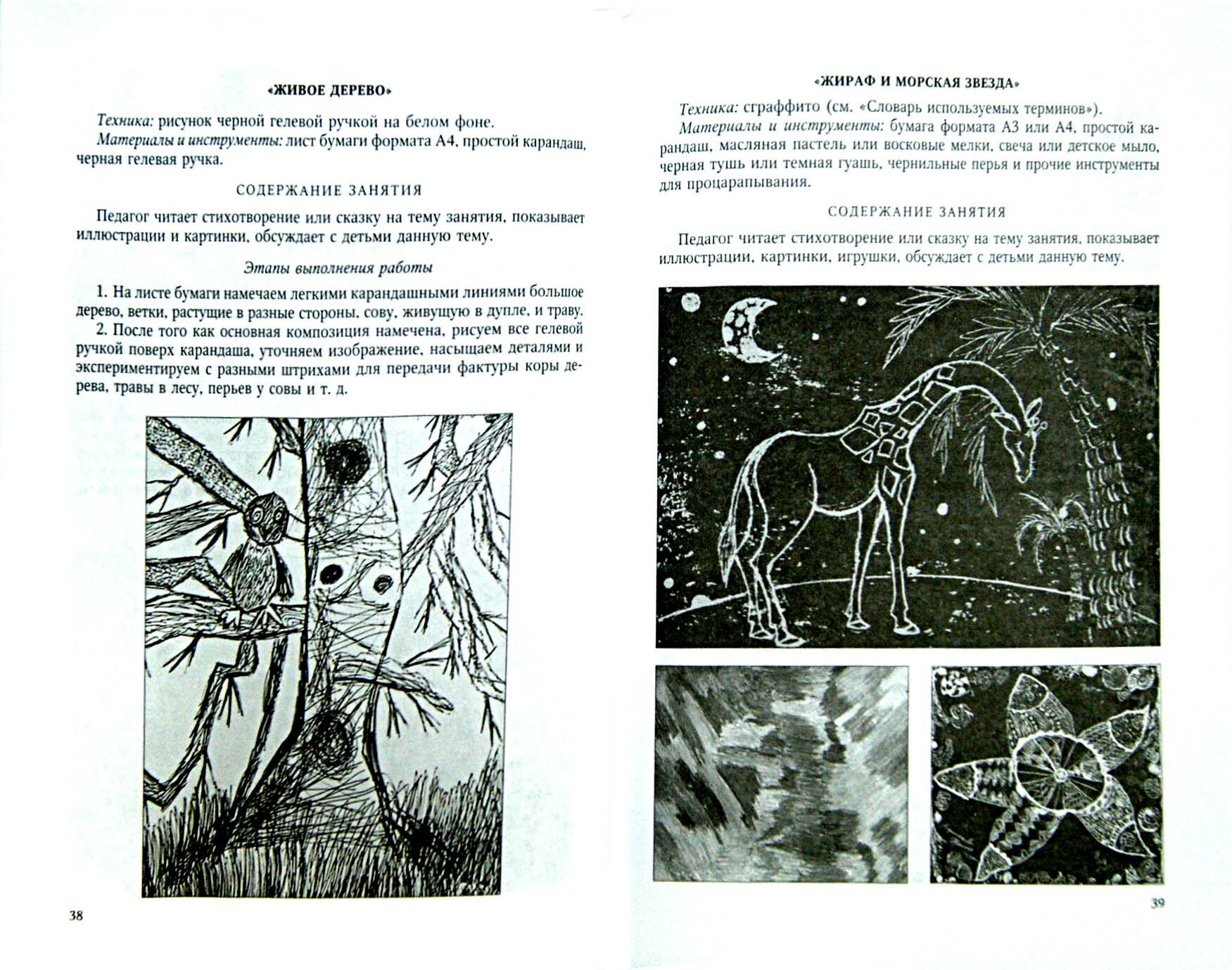 Книгу получили только вчера, поэтому только просмотрела, но еще не пользовались. Как только появится возможность, обязательно что-нибудь попробуем, потому что предложенные техники очень интересные и не слишком сложные для исполнения. Используются доступные материалы - в большинстве случаев они есть дома. Есть занятия по живописи, графике, аппликации, коллажу, лепке. В каждом занятии по пунктам расписаны этапы выполнения работы.