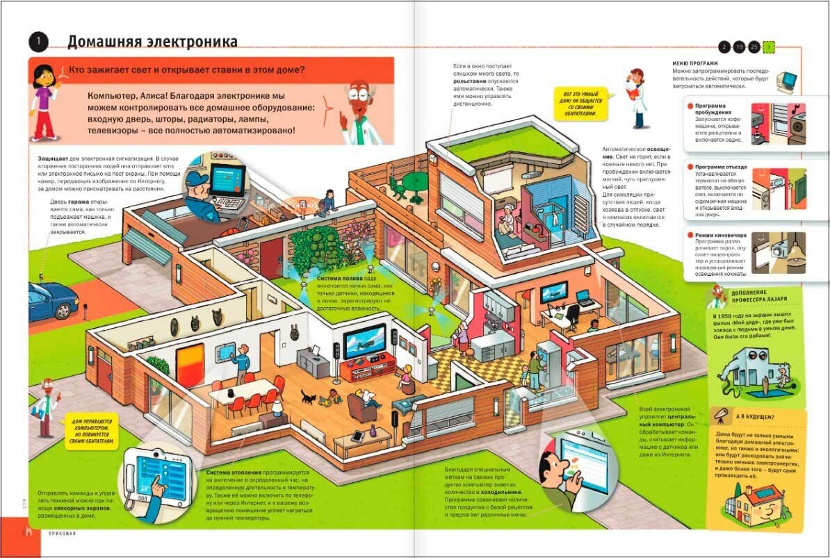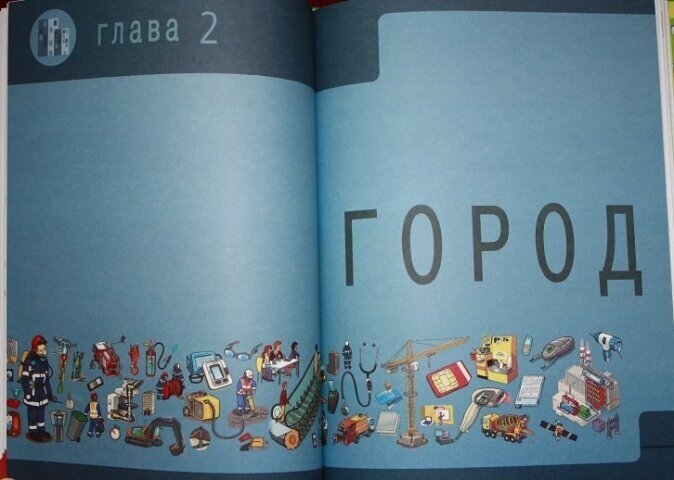 В книге 4 раздела: Дом, Город, Досуг и Транспортные средства, больше всего рассмотрено предметов и механизмов из первого раздела.