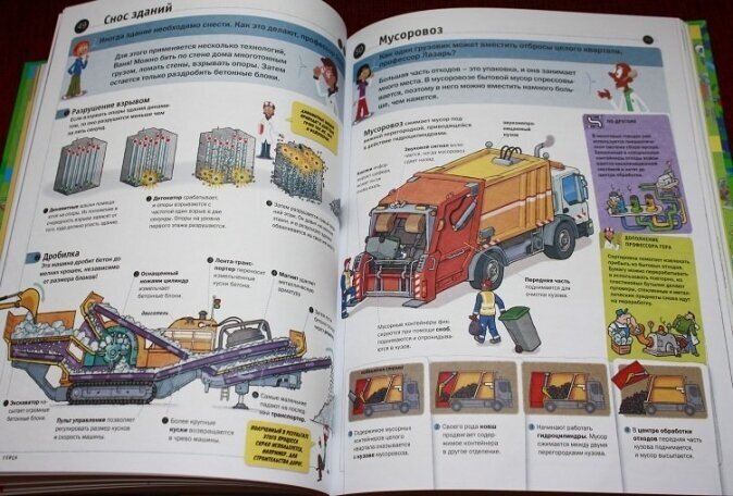 До этой книги сначала купила 2 тоненькие: как устроен автомобиль и как устроен самолет, в тоненьких более подробнее рассмотрена каждая тема, а в данной книге на каждый объект или устройство отводится один разворот, зато их, согласно названию целых 250.