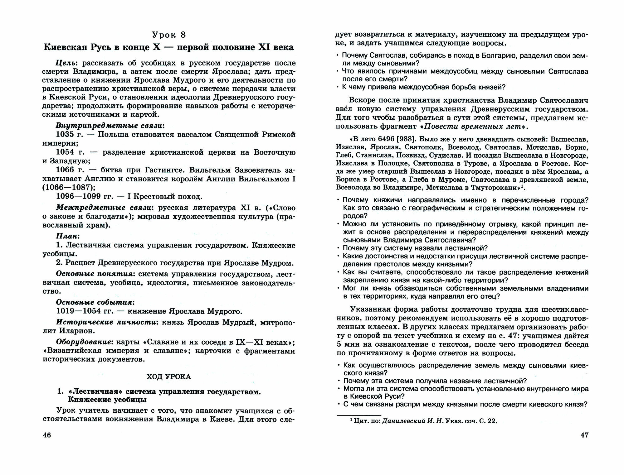 Методическое пособие предназначено для организации преподавания истории России по учебнику И. Н. Данилевского и И. Л. Андреева "История России с древнейших времён по XVI век" для 6-го класса основной школы.