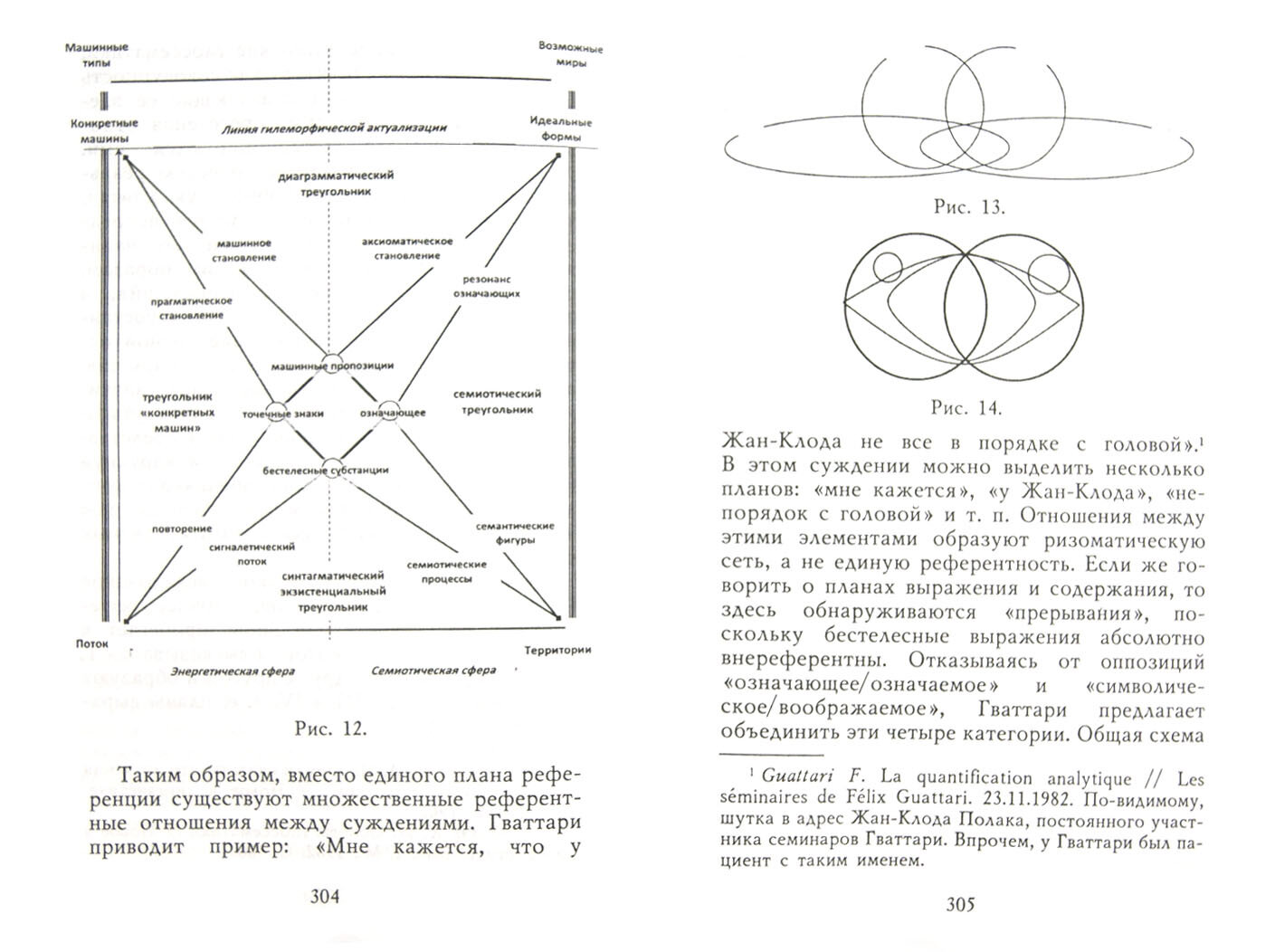 По факту книга из себя представляет расширенную версию более ранней работы автора "Феликс Гваттари : шизоанализ и производство субъективности". И вроде бы это должен был быть плюс, но, спасибо редактору, некоторые смысловые части книги дублируются, а местами тут просто обильные переводы кусочков работ как самого Гваттари, так и иноязычных биографий аналитика. Закрадывается мысль, что это побочный продукт работы автора по Делёзу того же периода.