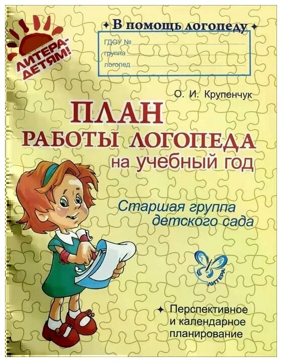 План работы логопеда на учебный год. Старшая группа детского сада (Крупенчук Ольга Игоревна); Литера, 2013