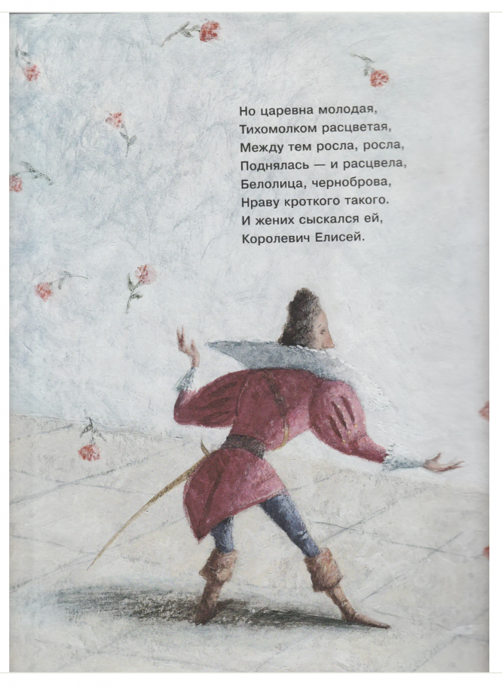 Нельзя не признать, что книга очень красивая и сразу привлекает к себе внимание. Формат очень большой, почти квадратный, переплет глянцевый, бумага мелованная, печать качественная. Иллюстрации Антоненкова мне лично понравились своей оригинальностью, они необычны в том смысле, что Пушкина никто еще так не иллюстрировал. Я бы сказала, сказка представлена скорее в европейском стиле, чем в русском - королевич Елисей в шлеме с перьями и широком круглом воротнике, царица в напудренном парике с буклями. Но в то же время - совершенно русский терем и царевна с венком из полевых цветов на голове. С богатырями вообще странно дело обстоит - они румяные и усатые, и толстые и носатые. И одеты как-то непонятно. На охоту едут верхом на лошадях в каких-то высоченных колпаках? Это богатыри или гномы? Эти несоответствия не совсем понятны, тем не менее иллюстрации можно назвать какими угодно, но не "слабенькими". Не в укор уважаемому предыдущему рецензенту сказано, но оформление выполнено не без известной доли таланта. "Белоснежку", например, как только не иллюстрировали, кем только не представляли... Один Б. Лакомб чего стоит, М. Михальская - тоже своеобразно, так чем же наша-то царевна хуже? Вот Антоненков и решил, как видно, этот пробел восполнить. Что ж, на то он и художник. Мне нравится, ставлю книге хорошие оценки и оставляю ее в домашней библиотеке.