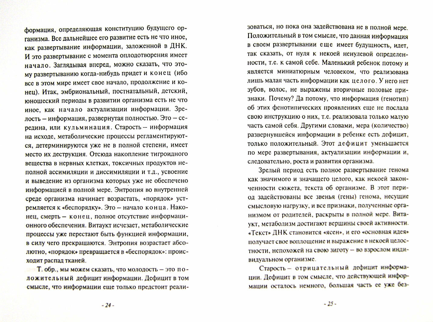 Книга посвящена, главным образом, одному из аспектов биологии - геронтологии. Но центральная тема этой книги и дальнейших выпусков - Информация, её существование в рамках живой системы. Брошюра написана доступным (научно-популярным) языком и рассчитана на достаточно широкий круг читателей, интересующихся происхождением и сущностью Жизни.