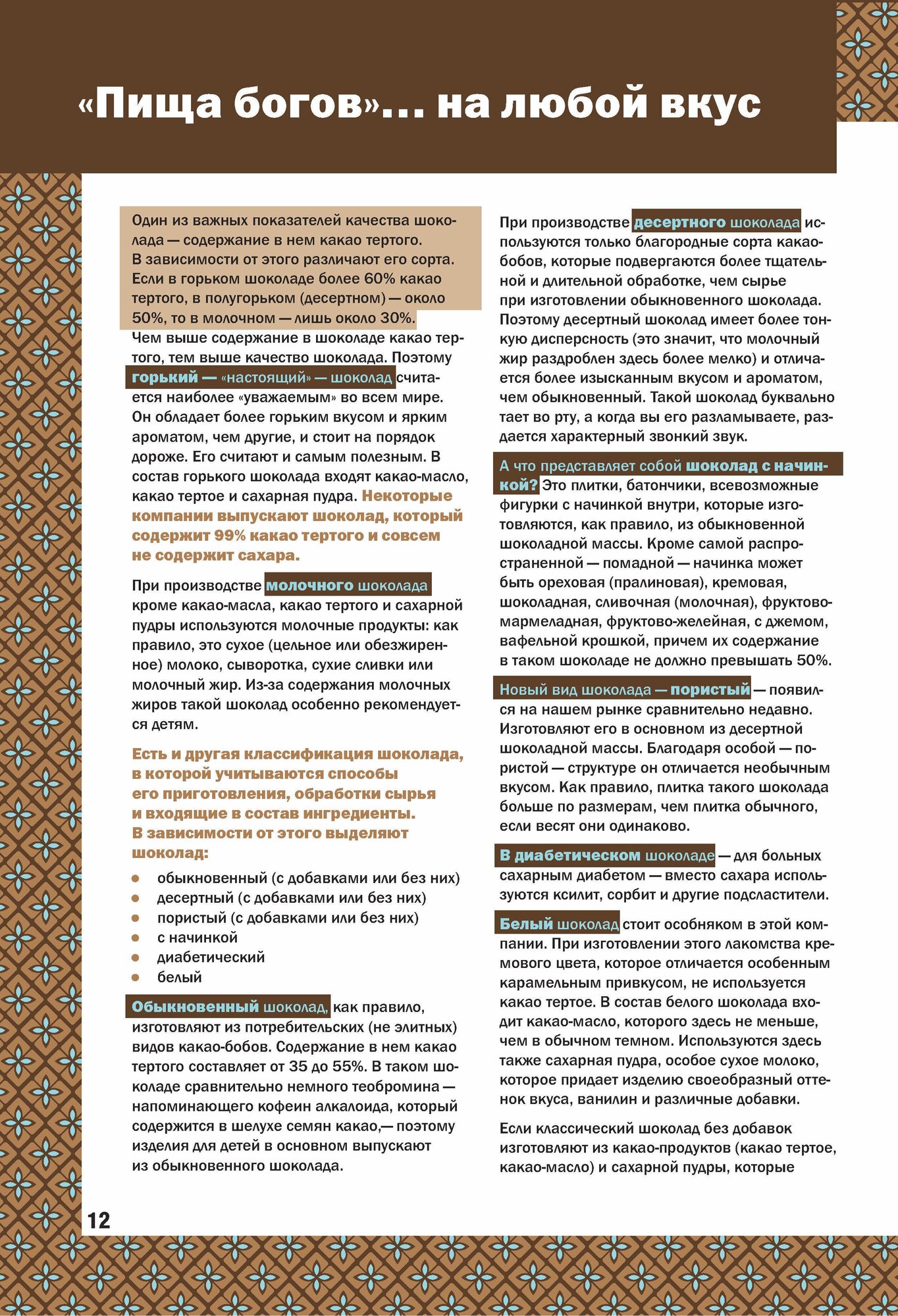 страсти зельем; считали то средством "от всех недугов", то вредным для здоровья лакомством. Сегодня наши представления о шоколаде значительно изменились.