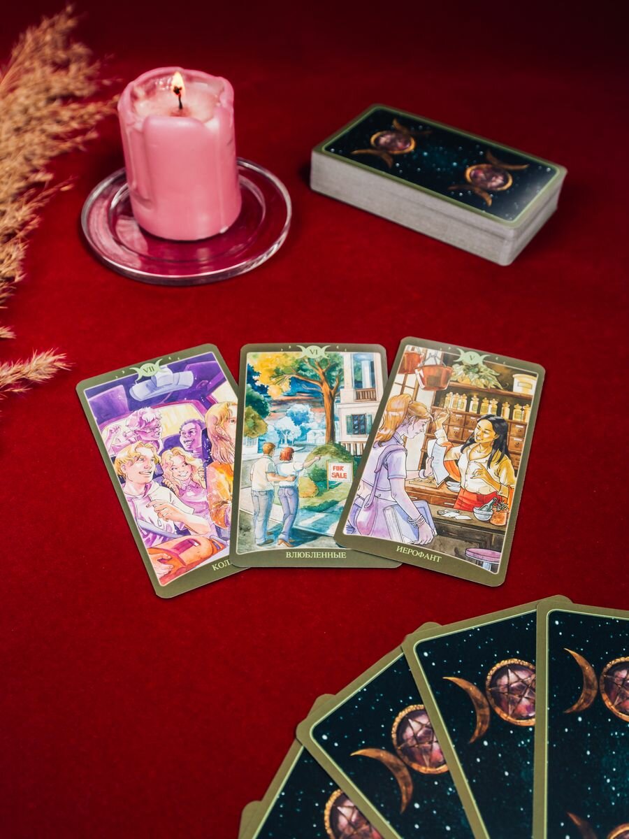 Красивая работающая колода. Приятно держать в руках. Ответы просты и понятны. Сюжеты карт обрисовывают сцены повседневной жизни, и прекрасно подходят для гадания на бытовые вопросы. Для более возвышенных тем создана вторая колода. Качество как всегда на высоте. Я рекомендую приобрести эту колоду.