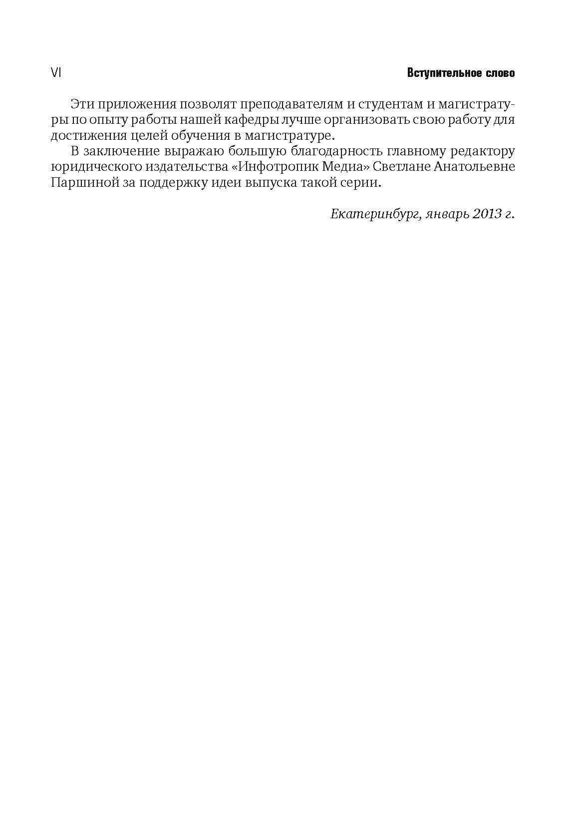 Издание включает также программу магистерского курса; список рекомендуемой литературы; список рекомендуемого национального, иностранного и международного законодательства; список наиболее значимых судебных дел.