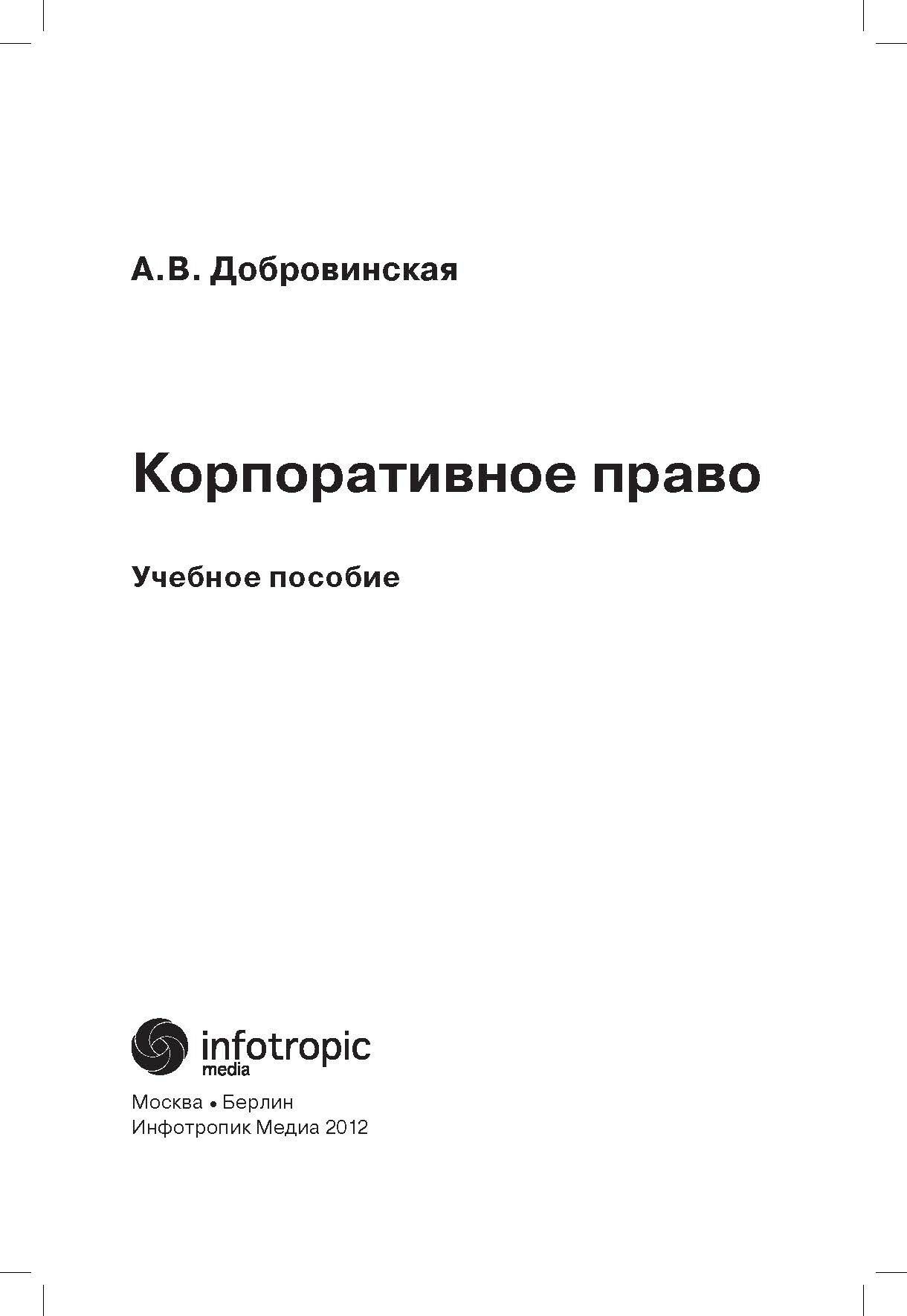 Корпоративное право: учебное пособие (Добровинская Алла Владимировна); Инфотропик, 2012